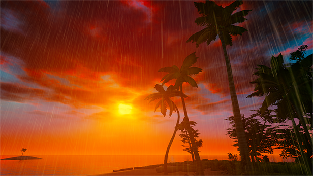 Fantastic super dynamic sky, complete dynamic day and night circulatory system, more than a dozen different random weather changes, clear sky and clouds, dark clouds, heavy rain, colorful clouds, dreamy sunrise and sunset, amazing heavy rain and thrilling lightning thunder... You will experience something you've never felt before. The wind in the game is also dynamic. Trees and oceans will change in different states with the wind. From calm to stormy waves, it will interfere with your raft.