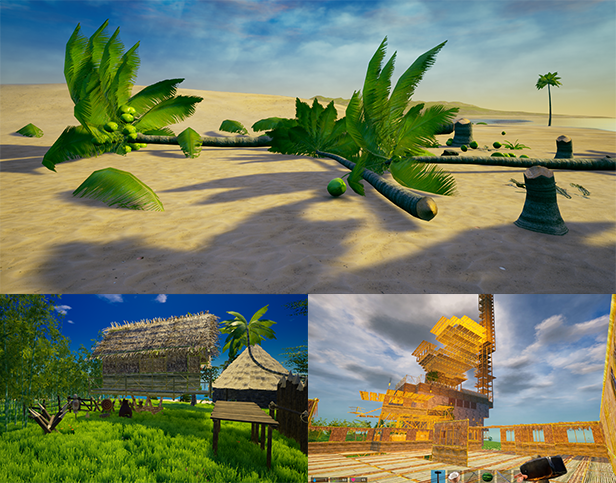 You can create rafts and boats that you can drive on the ocean with dynamic wind and buoyancy. Dynamically changing waves can affect your speed, and huge waves can even flip your boat. You can also swim to explore the underwater world, shuttle through the coral and fishes, kiss the gentle white sharks, build some buildings on the sea floor, and even plant trees on the sea floor.