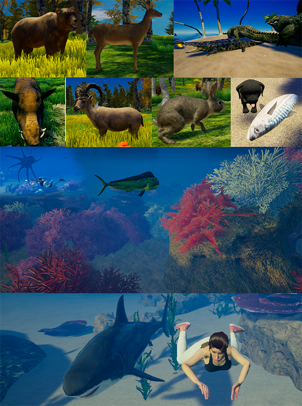 At present, there are more than a dozen land animals and fishes in the game, including Seagull, eagle,saltwater crocodile, great white shark, brown bear, prairie wolf, wild boar, hare, deer, viper, various marine fishes, etc., and more marine animals and birds will be added in the future,You can make the animal into a specimen and put it at home as a collection. Hunting will be very interesting.You can't imagine dozens of cold giant saltwater crocodiles lurking in the coconut grove on the beautiful island.
