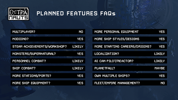 Ostranauts is a detailed simulation, with many interdependent systems. Players will have to manage supplies, emotions, power grids, finances, security, social ties, and more to keep their enterprise alive, both literally and figuratively.