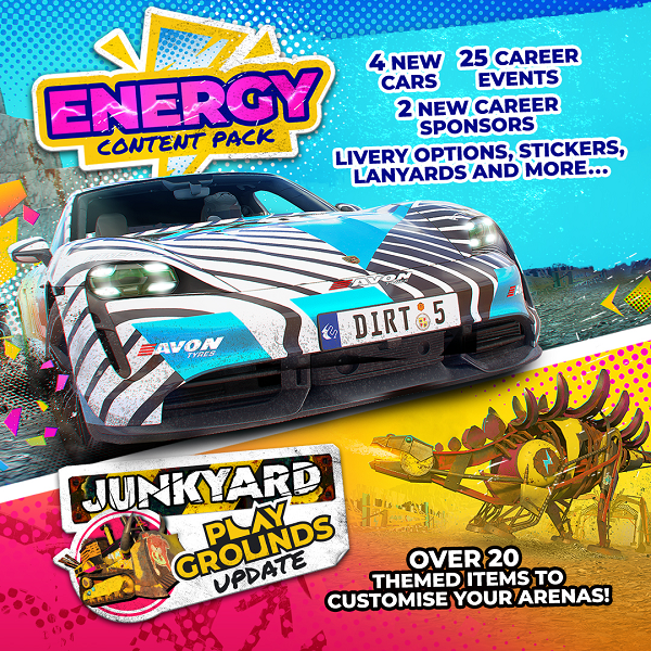 Continue your career in the DIRT Off-Road Series with the Energy Content Pack - with new cars, career events, sponsors and customisation items! Available to purchase now on Store or included as an entitlement for Amplified Edition and Year One Upgrade / Edition owners.