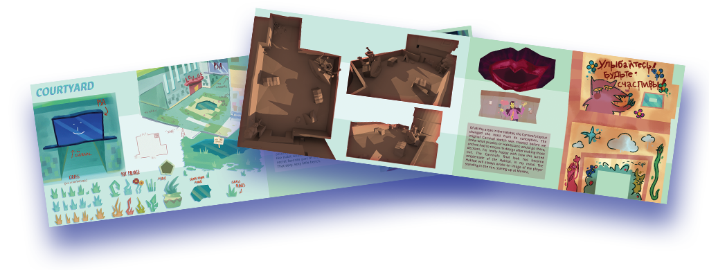 - Detailed concept art, layouts, and character sketches