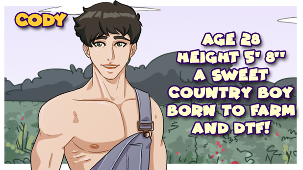 Cody is super excited to finally start farming. The lustful gay hunk picked the perfect village to start his new life. Morningdew is a total Gayborhood!