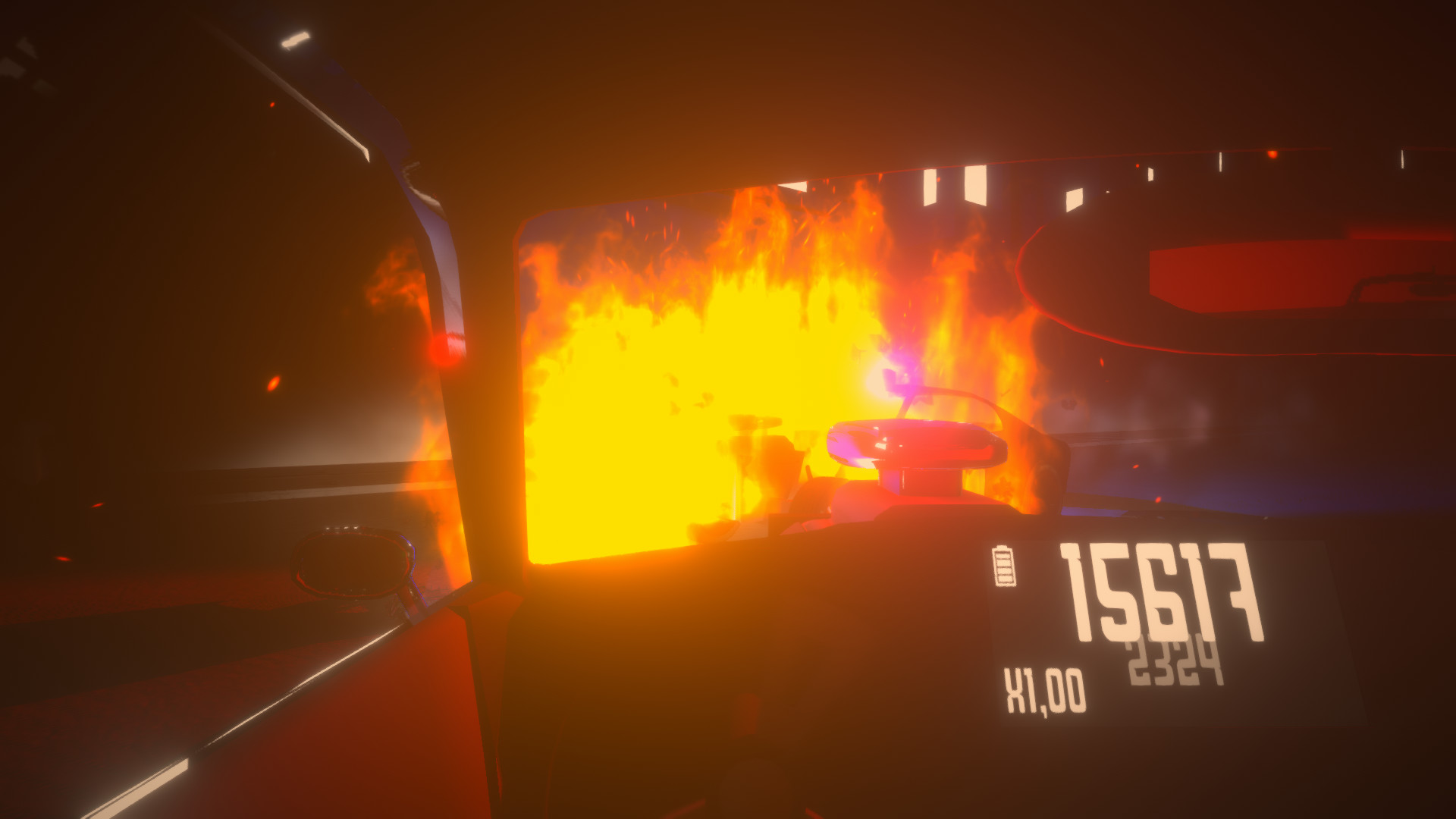 Think of Downtown Drift as pac-man, but as a first-person racing game. You need to try and score as many points as possible by drifting while police is chasing you down. Each drift gives you a certain amount of points and also increases your multiplier. The higher the multiplier, the more points you get for each drift. However there is a catch: you only have limited health and you take damage everytime you crash, so watch how you move!