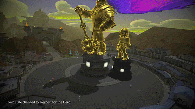 The town and its inhabitants can switch between several states. You will only see a version of your world in your playthrough as both, the town and its inhabitants are affected by your choices and actions.