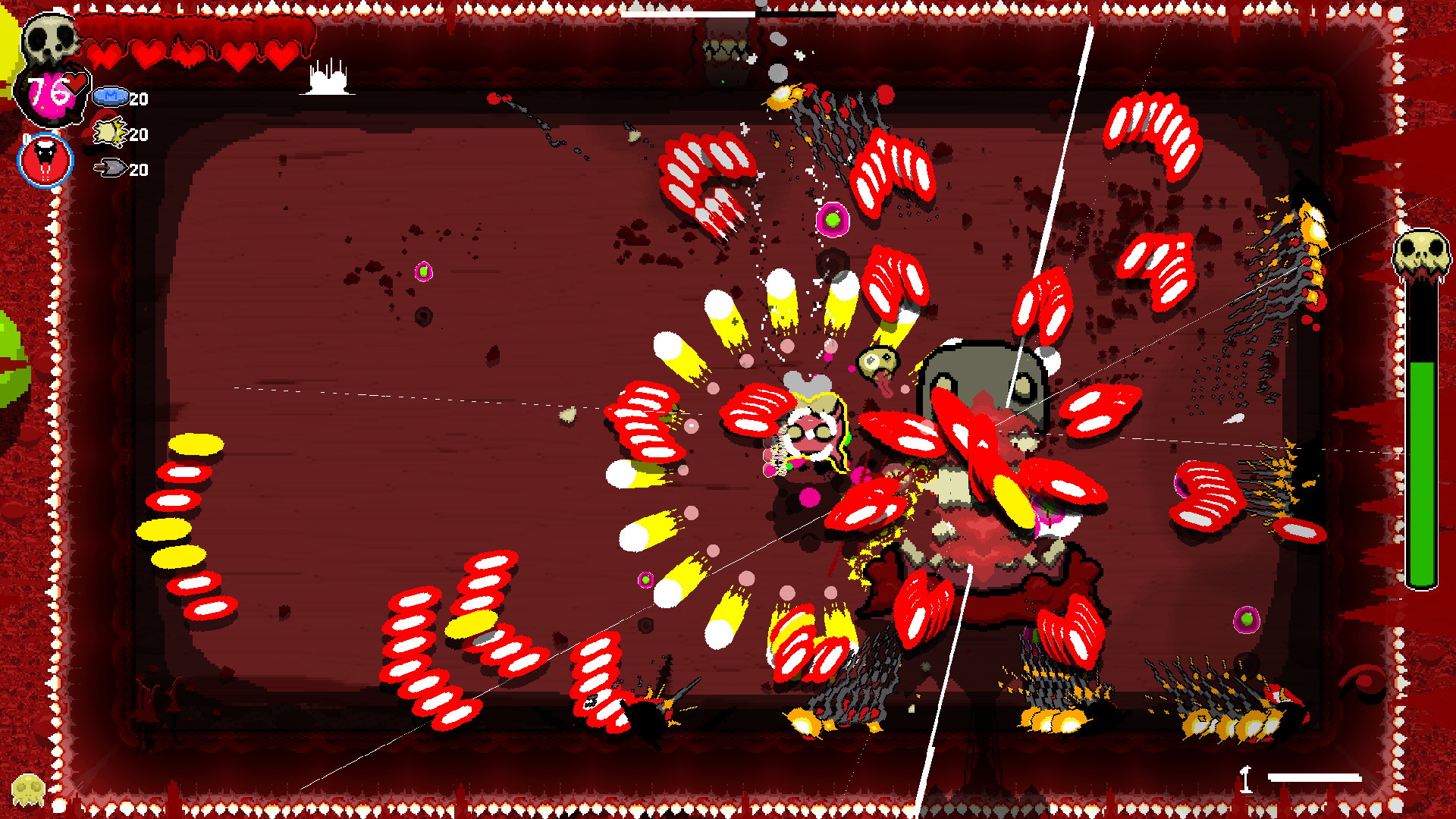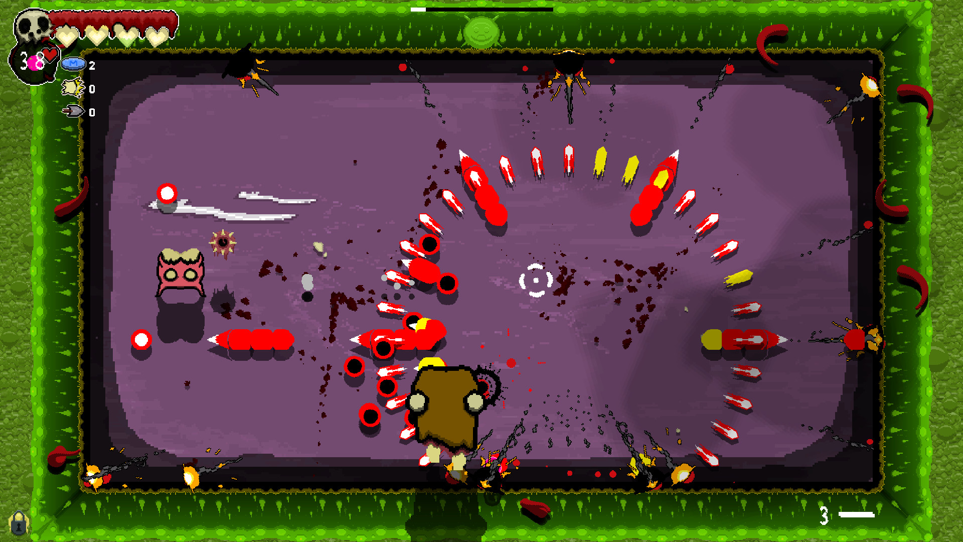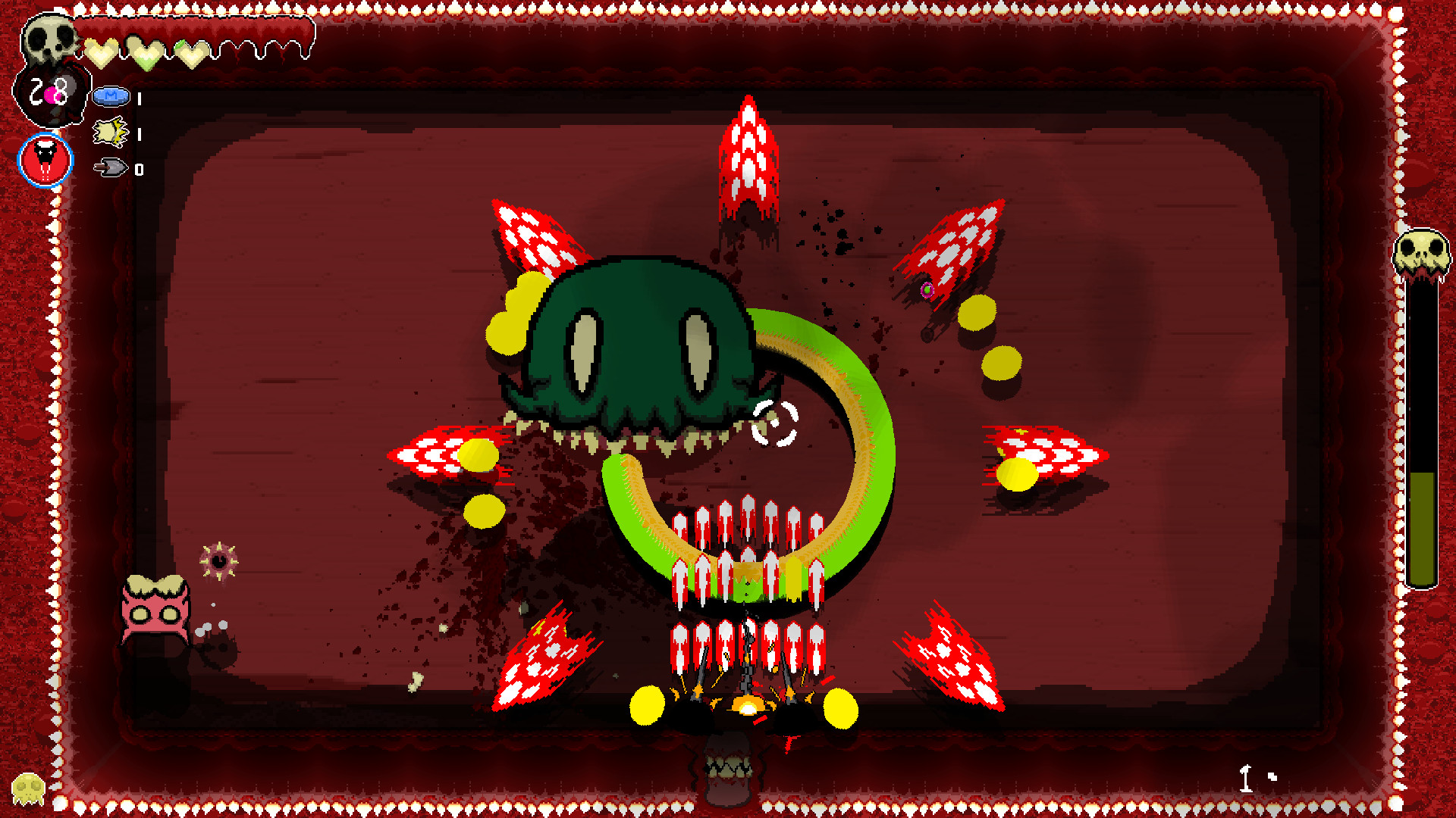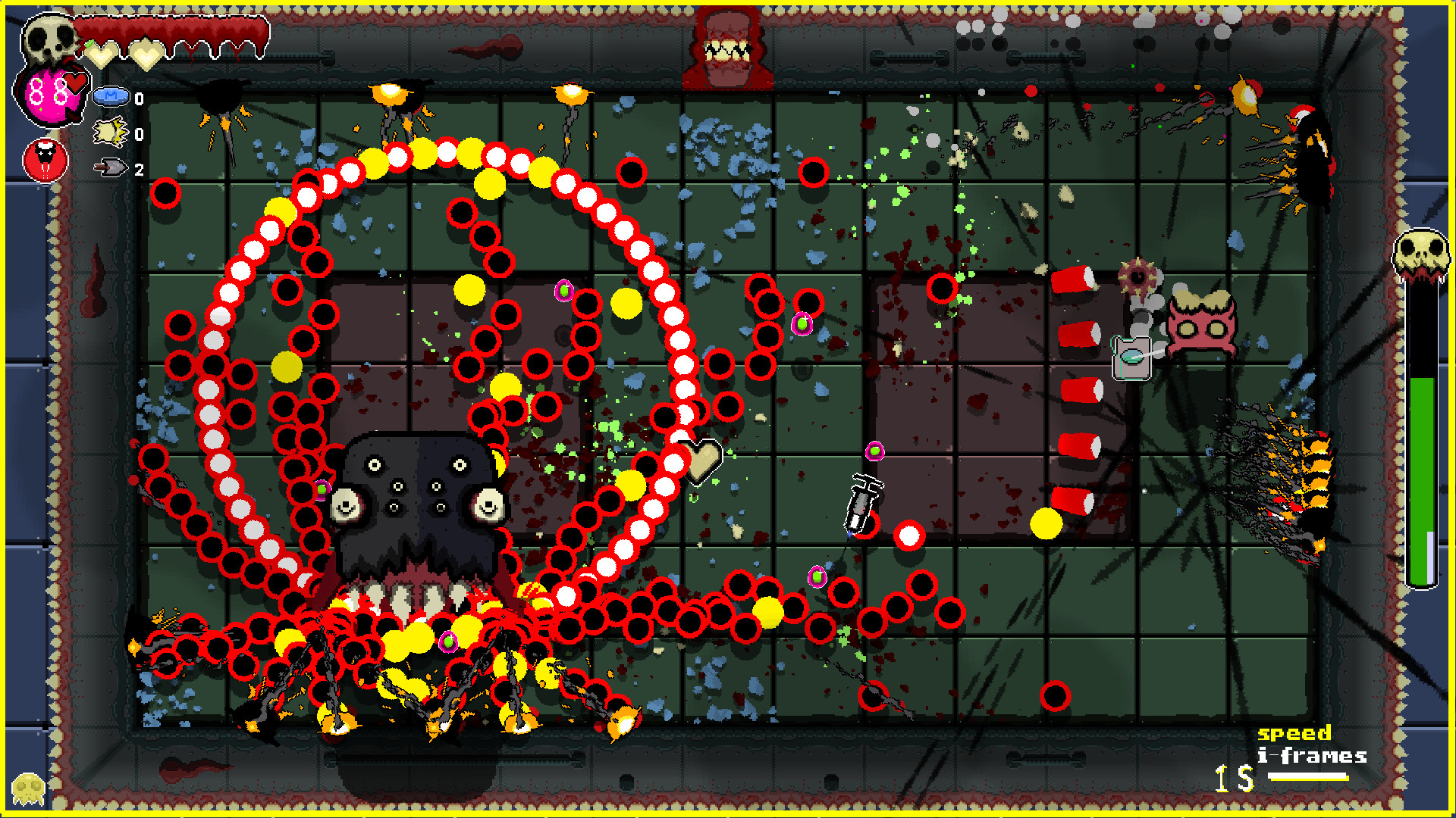 Contract diseases as you play. Diseases are powerful but come at a price. Do you risk the poison of diarrhea for the speed and urgency it creates in you? Leave the disease behind, and the body will consume the disease increasing the difficulty. Take entamaphobia to give all doorways a powerful laser. However, doors now cause damage by going through them. There's a creature that can administer a cure. But where and when you find him is unknown.