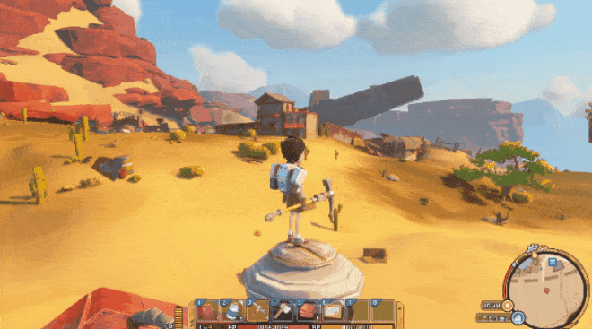 CUSTOMIZE AND BUILD YOUR WORKSHOP: You'll have an intricate set of machines that all work together to produce parts of huge structures for the town that you assemble piece by piece, or head to your worktable to craft hundreds of unique items that can help out individual townspeople or be placed throughout your own homestead.EXPLORE THE OPEN WORLD: You'll explore the vast deserts surrounding Sandrock, diving into ruins to find ancient relics from the Old World, facing the dangers of dungeons and their denizens, then return to your homestead with encumbering bags of treasure in tow.