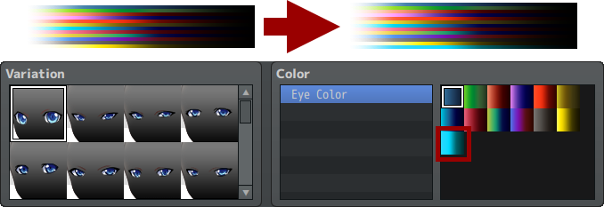 이 툴에 포함된 리소스를 조합하여 자신만의 독창적인 캐릭터를 만들어보세요.해당 기능을 사용하면 애셋을 조합하는 것 외에도 다양한 시각 패턴을 만들어 낼 수 있고 색상을 바꿀 수도 있습니다.