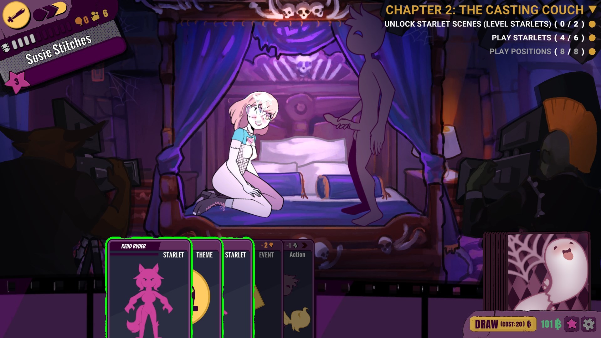 Create the films of your wet dreams! Spooky Starlets is an erotic deck-building porn studio simulator that tasks you to work alongside sultry monstergirls. Unlock new cards, develop lasting friendships, and work your way to the top of the adult film industry!