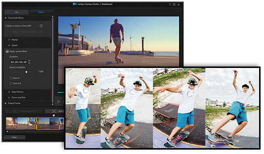 액션 장면을 편집, 수정, 보정하는 데 필요한 모든 툴이 포함되어 있습니다. 액션 카메라로 촬영한 장면을 편집하기 위한 필수 툴입니다.