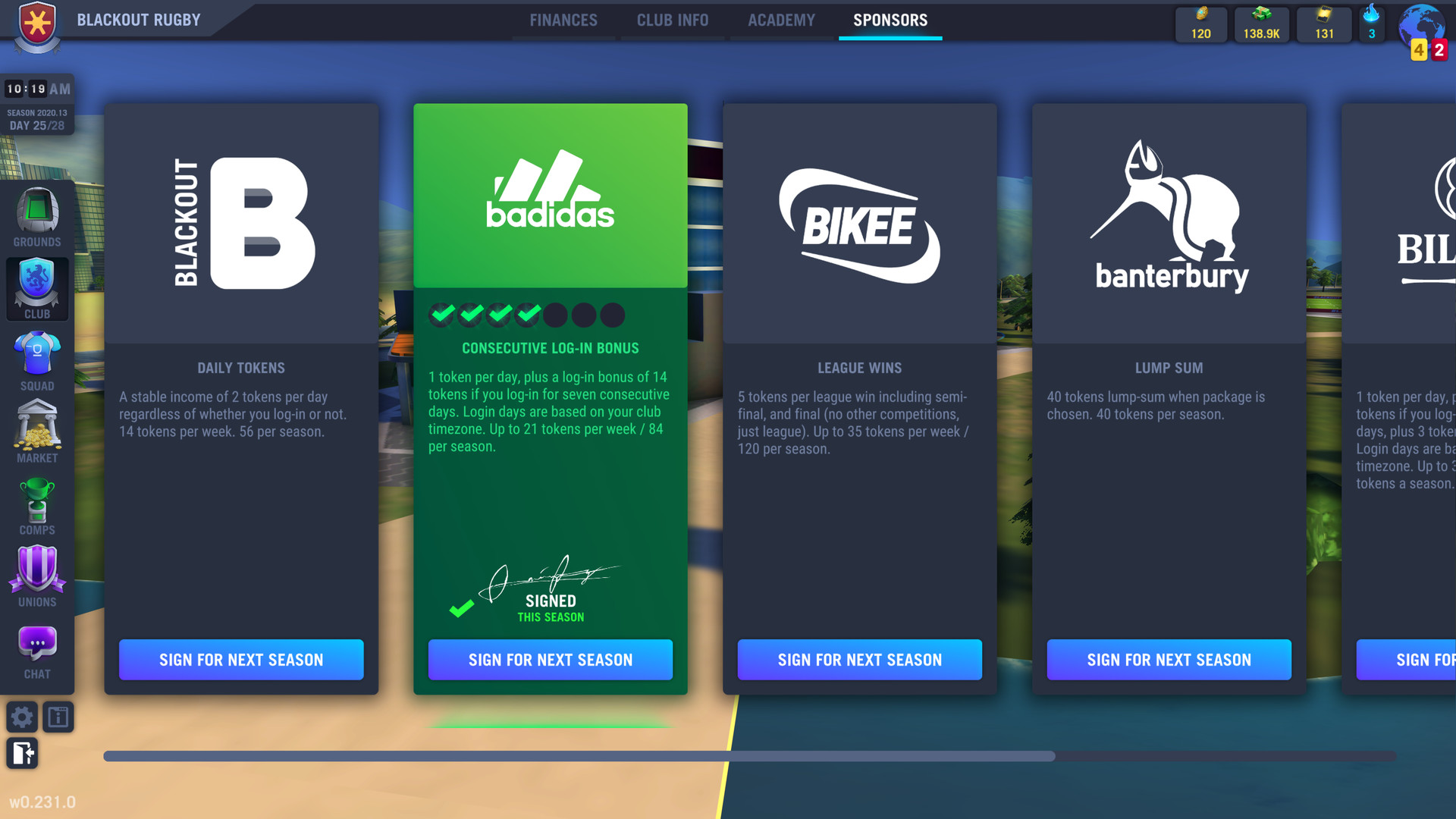 - A balanced finance system that allows you to concentrate on the things that actually bring your club success whilst leaving the boring mundane money counting to your club’s board.