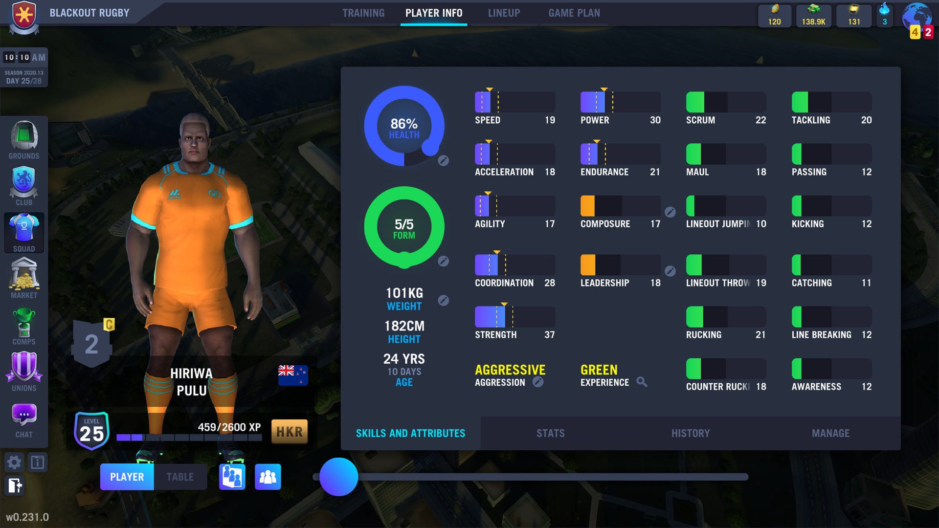 - Individual player avatars and multiple technical rugby skills and physical and mental attributes that make every player unique.