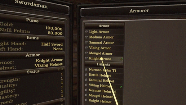 The items you choose to wield, wear or upgrade will affect how the game feels, allowing you to develop an interesting character with different strengths and weaknesses. Upgrade your strength stat to carry weapons with more ease. Upgrade your agility stat to improve your speed whilst wearing heavy armor. Don't care for heavy armor? Strap on the Samurai armor set and weave your way through enemies at full speed.