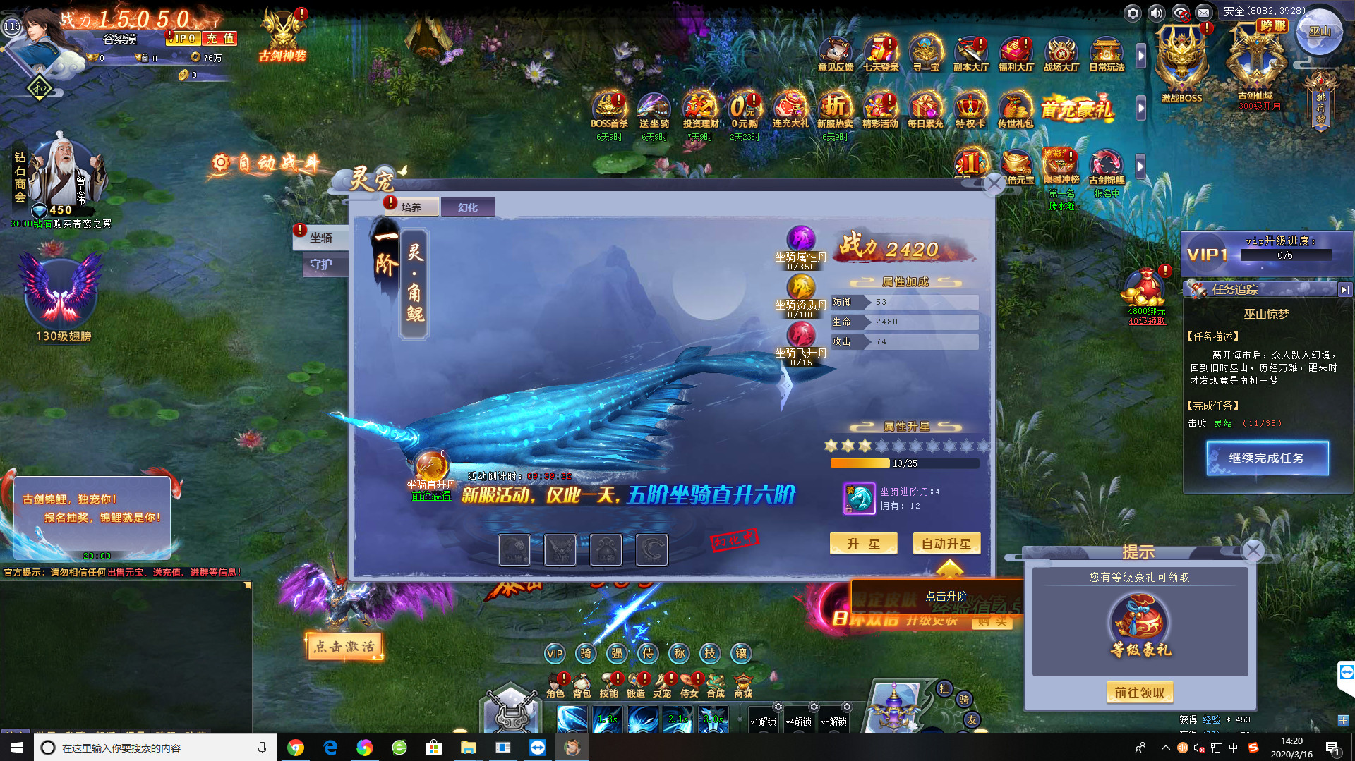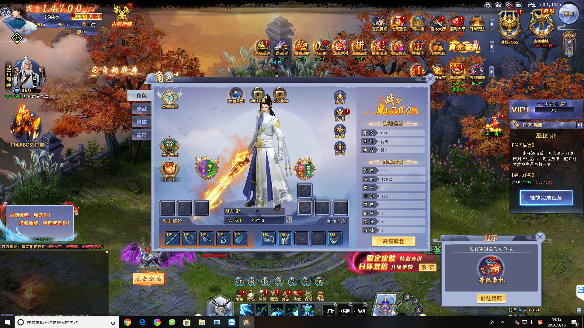 元神系统是一个非常强力的系统,它是玩家提升战斗力,必须考虑的一个环节。元神等级提升要消耗元神经验值,而且还需要角色达到指定等级后,才可以进行升级的。当玩家的元神经验值后,即可进入元神界面,点击“升级”的按钮,提升元神等级。