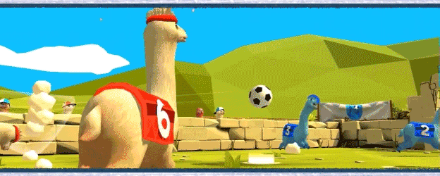 웃긴 알파카 옷을 차려입고, 긴 목을 휘둘러 공을 친 다음, 작은 다리로 공을 찬다. 예측할 수 없는 무작위성, 플레이어 기술, 그리고 바보 같은 물리학의 자극적인 혼합물이 코믹하게 매력적인 경기를 가능하게 한다.