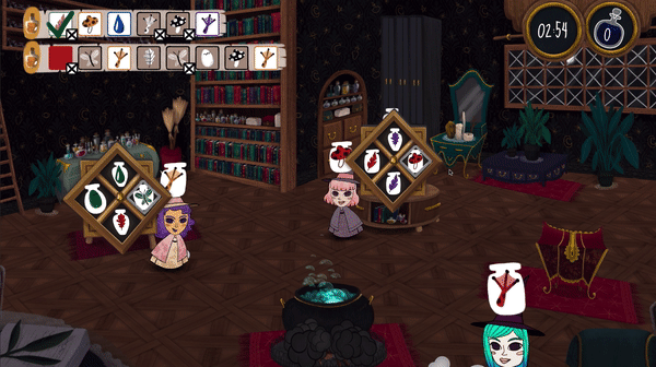 더 많은 물약을 만들려면 친구를 데리고 오세요! 하나의 재료가 물약에 맞지 않으면 다시 의사소통 해야 하고 다시 시작해야합니다!