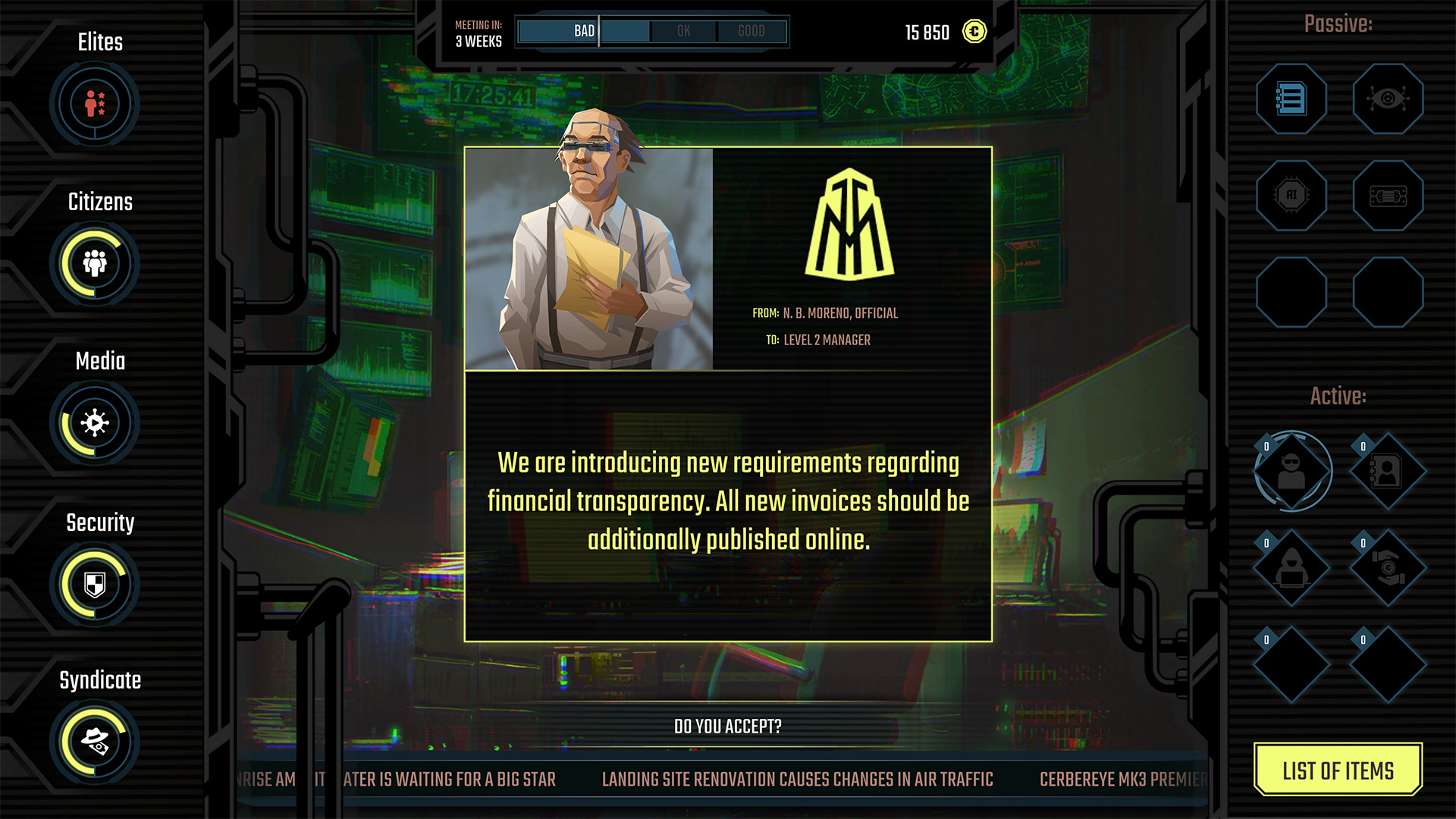 세상이 당신의 손 안에 있습니다. 올바른 전략을 선택하고 올바른 결정을 하세요. 많은 선택이 기다립니다. 각각은 시민들의 삶에 뚜렷한 영향을 미칩니다. "메가 회사"가 세계의 운영과 시민들의 삶에 영향을 미치도록 하세요. 회사는 특정 분야를 다루며 가능한 한 높은 수익을 얻고자 합니다. 그들은 고객 또는 직원을 고려하지 않습니다.