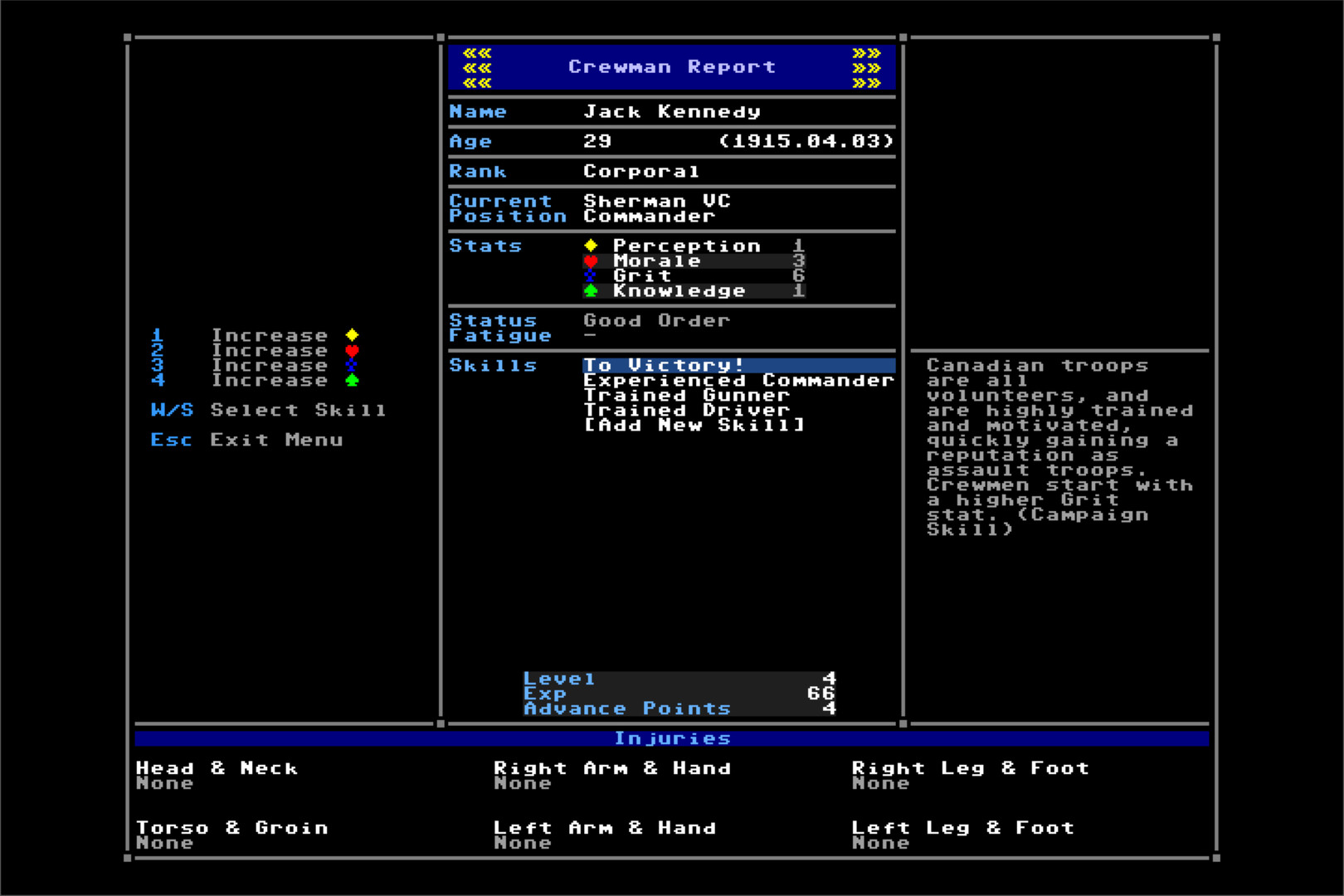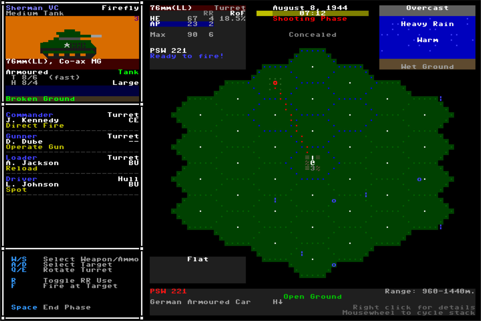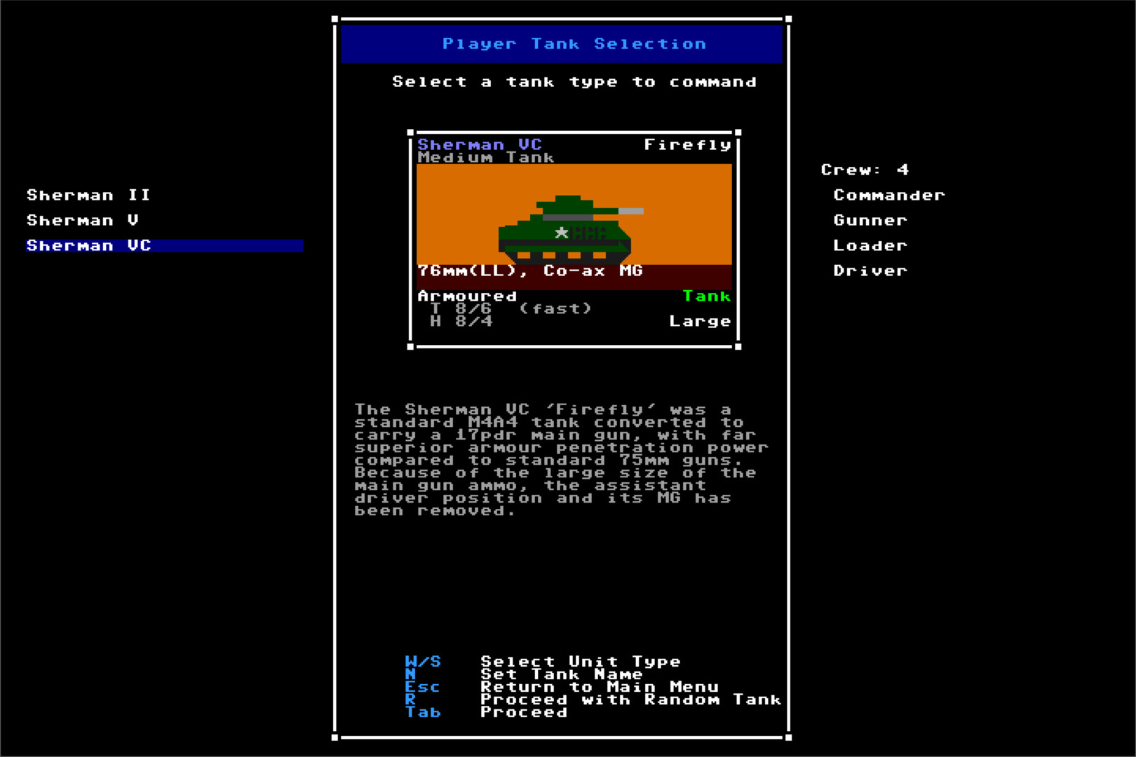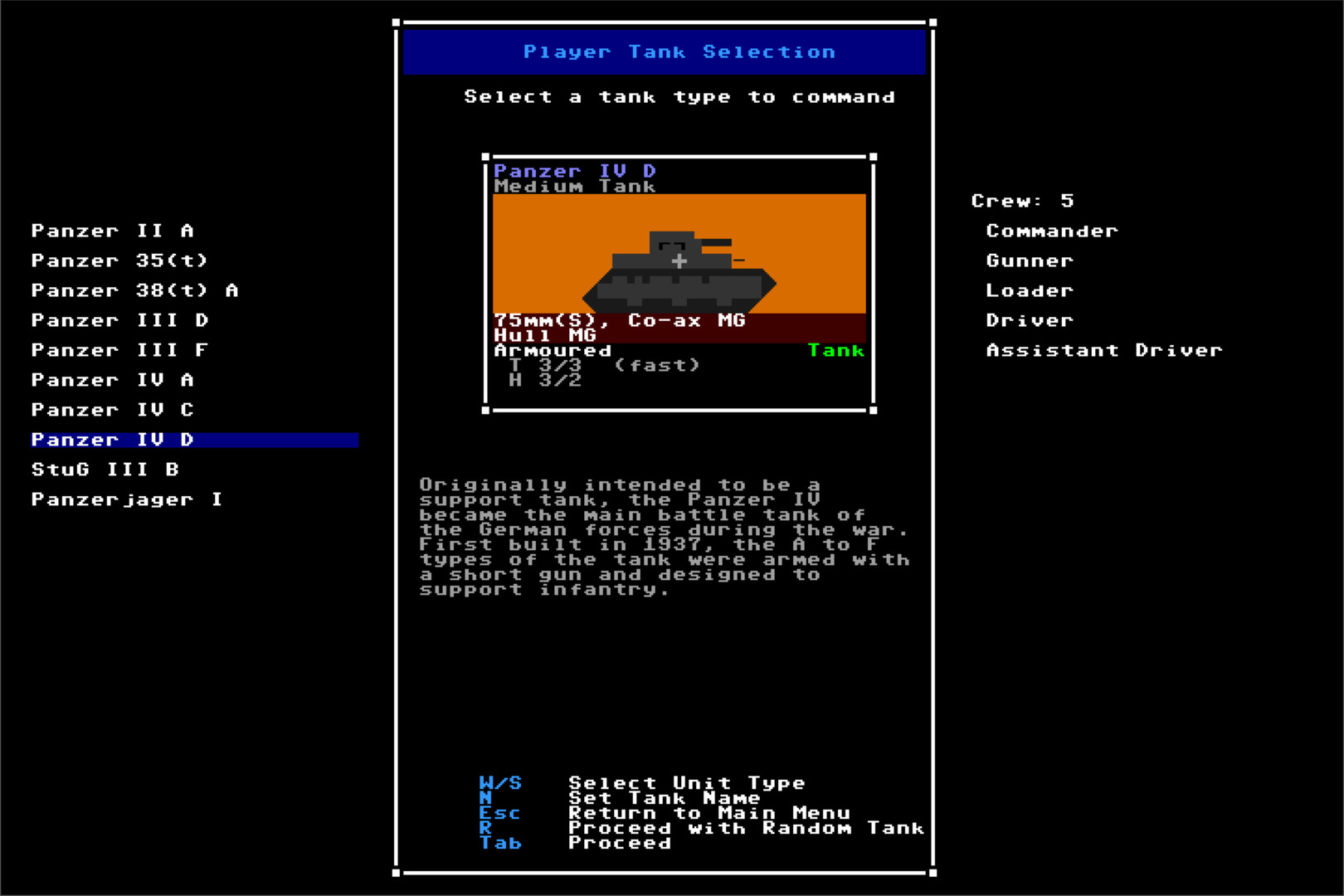 In Armoured Commander II, you play the role of a tank commander in World War II, leading your crew through a campaign in one of the major conflicts of the war. ArmCom2 features multiple campaigns set between 1939 and 1945, and hundreds of vehicles, guns, and infantry unit types. The terrain map for each combat day and the types of enemies you encounter are randomly and procedurally generated, which means that each playthrough of a campaign will bring new and unexpected challenges. Your commander and crew gain experience and can improve their stats and gain skills over time, but they are also vulnerable to injury and may be seriously wounded or killed during the course of a campaign.