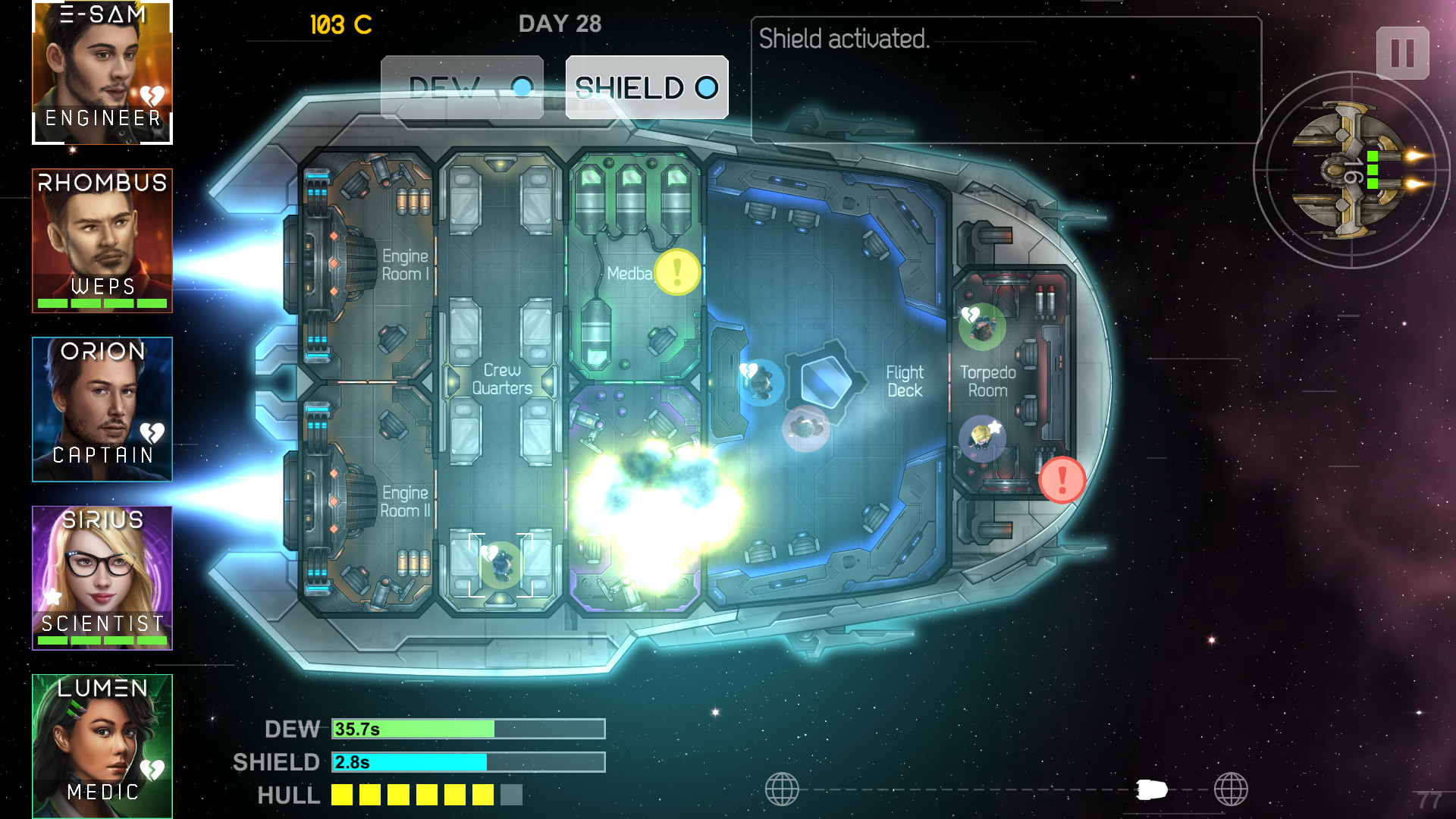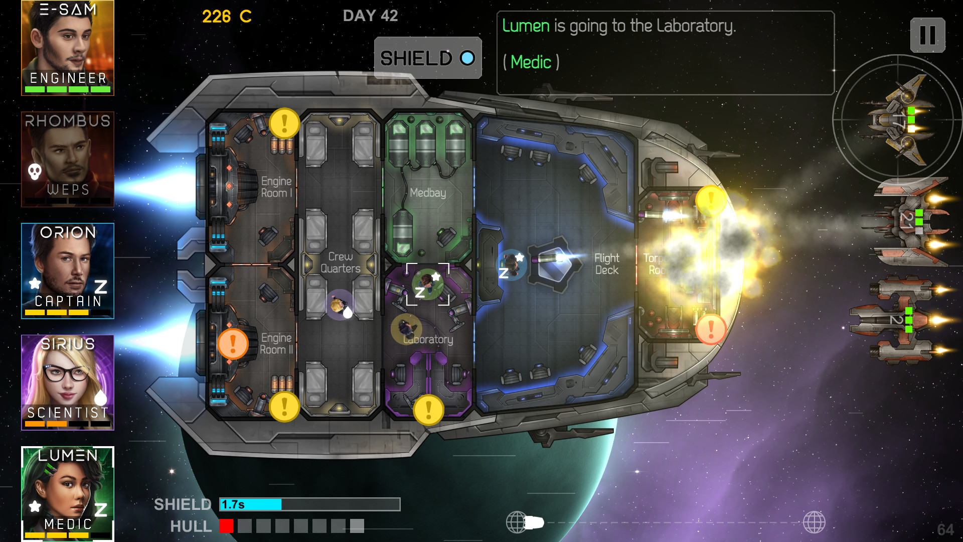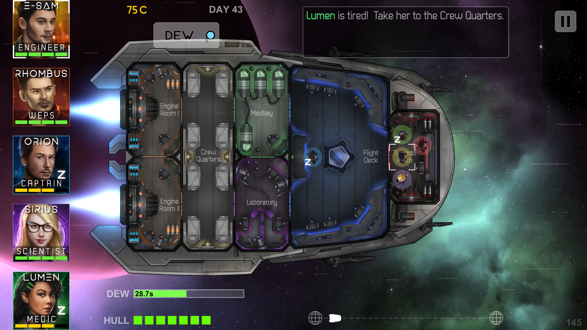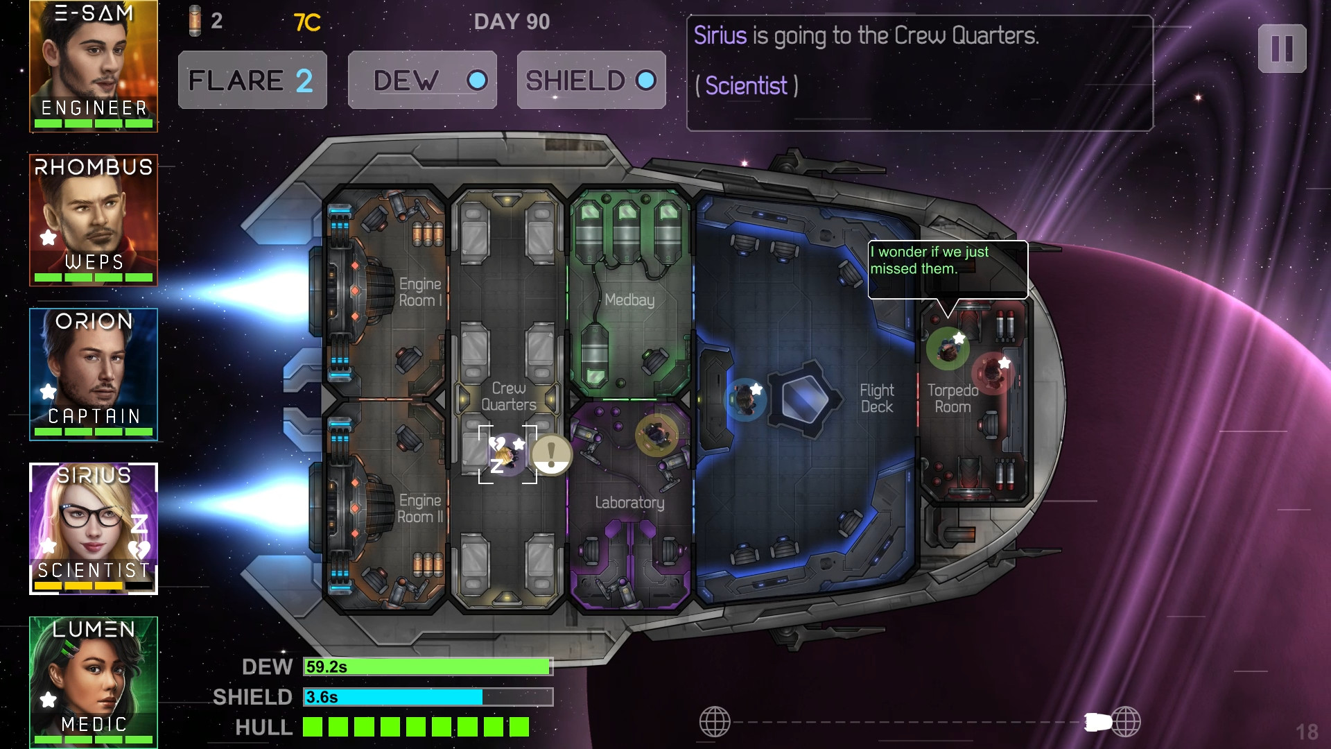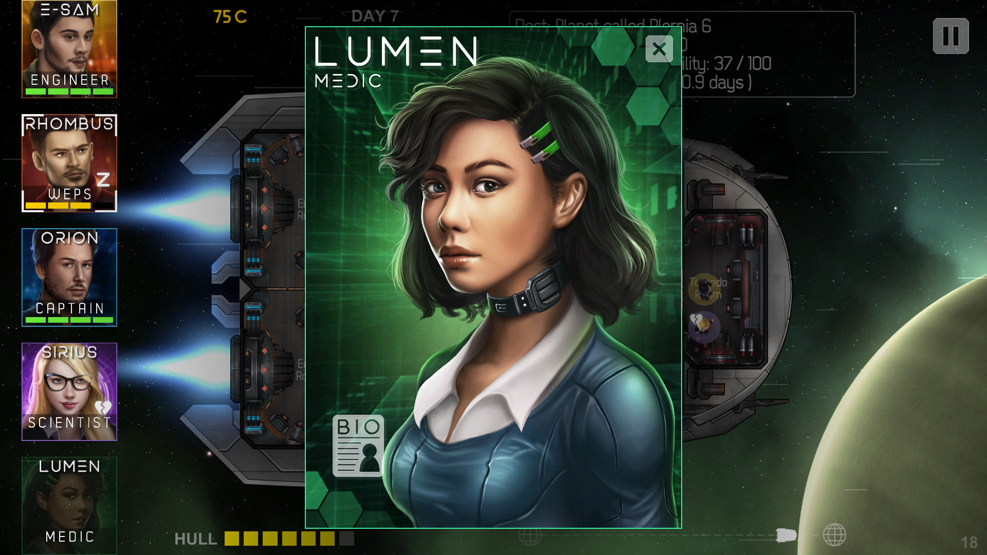 The essence of the Heliconian is to manage a mixed crew of renegades aboard the starship Heliconian. The idea is to manage the crew member’s actions and the ship’s functions to survive as long as possible while exploring the vast galaxy in the hopes of earning upgrades and ultimately a safe haven.
