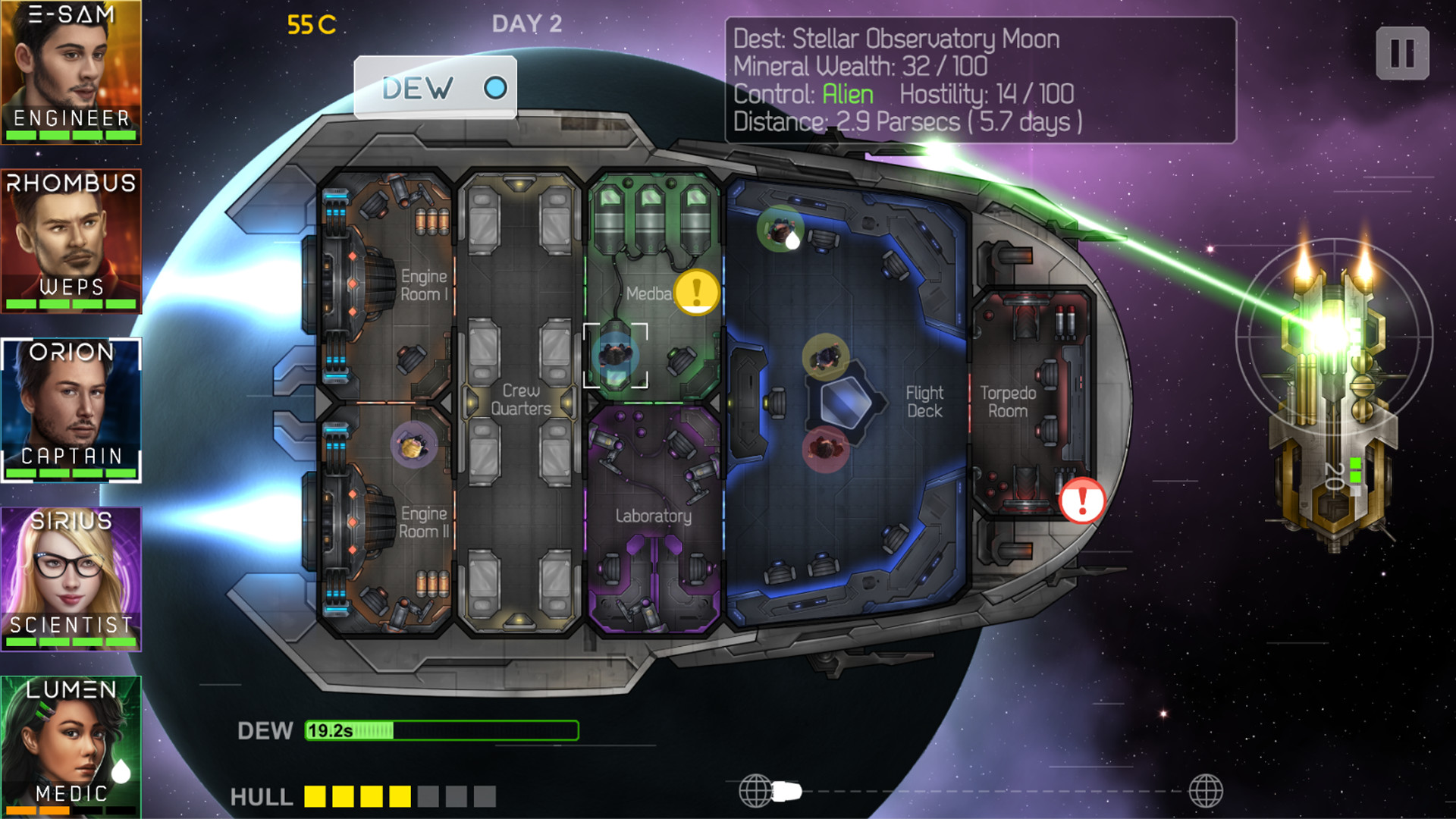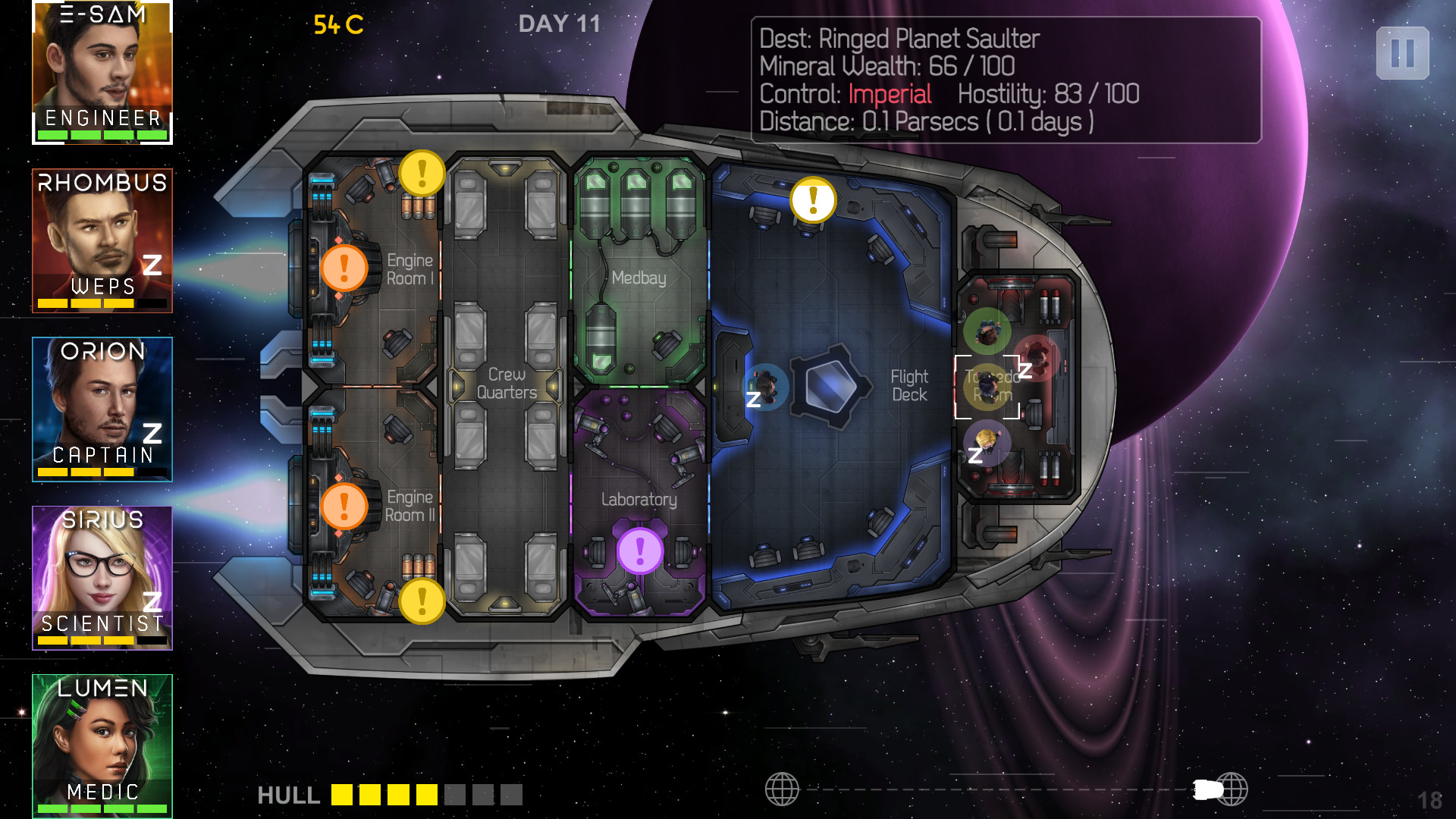 You are hunted by bounty hunters and the merciless Imperial fleet, running away with Heliconian, an old rugged starship. You are fighting for your life while exploring the Koitoi star system. You'll have to learn the strengths and weaknesses of your crew and use them to your advantage.