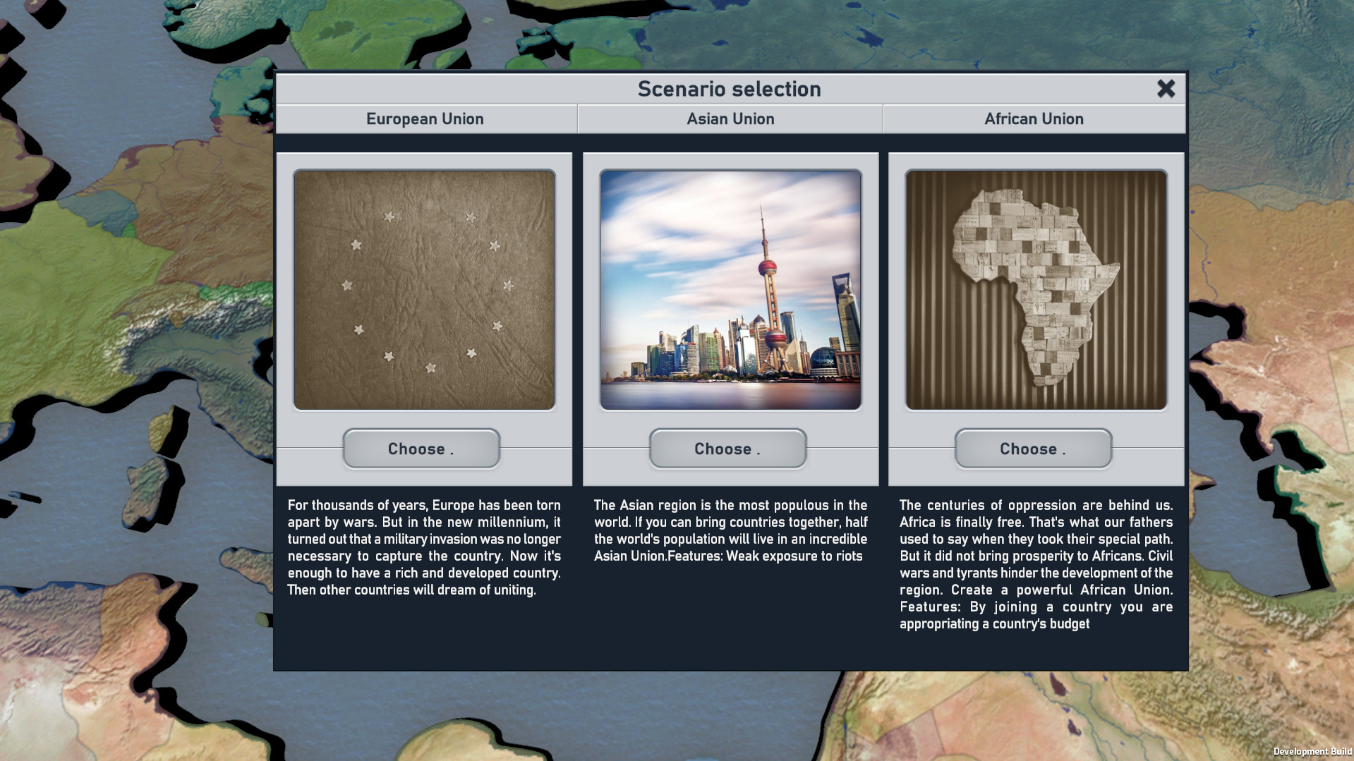 - 3 scenarios available (Europe, Asia, Africa)- 6 types of resources
