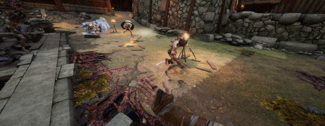 Hellsweeper VR came about from our desire to improve on what made our first game, Sairento VR, a huge hit with fans. We wanted to build upon a core tenet of Sairento - an intense no holds barred locomotion system that offered wall-running, power-sliding, backflips and more - all while improving its arcade-style action with semi realistic physics, allowing you to pull off even crazier moves. Juggle enemies in the air. Lop off a limb and use it as a club. Land on an enemy and use them as a bloody surfboard - yes, you read that right.