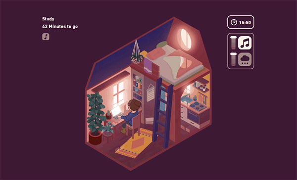Got some big, uncomfortable tasks you have been putting off for weeks? Virtual Cottage was made to help you start them. Upon entering your cottage, commit to an activity you want to accomplish. Enjoy the relaxing atmosphere to ease your start on whatever you want to get done.