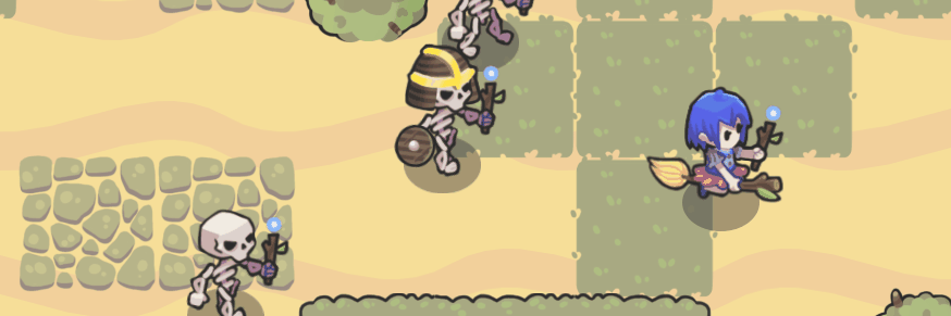 Sand Witch Adventures is a roguelike game with bullet-hell elements.