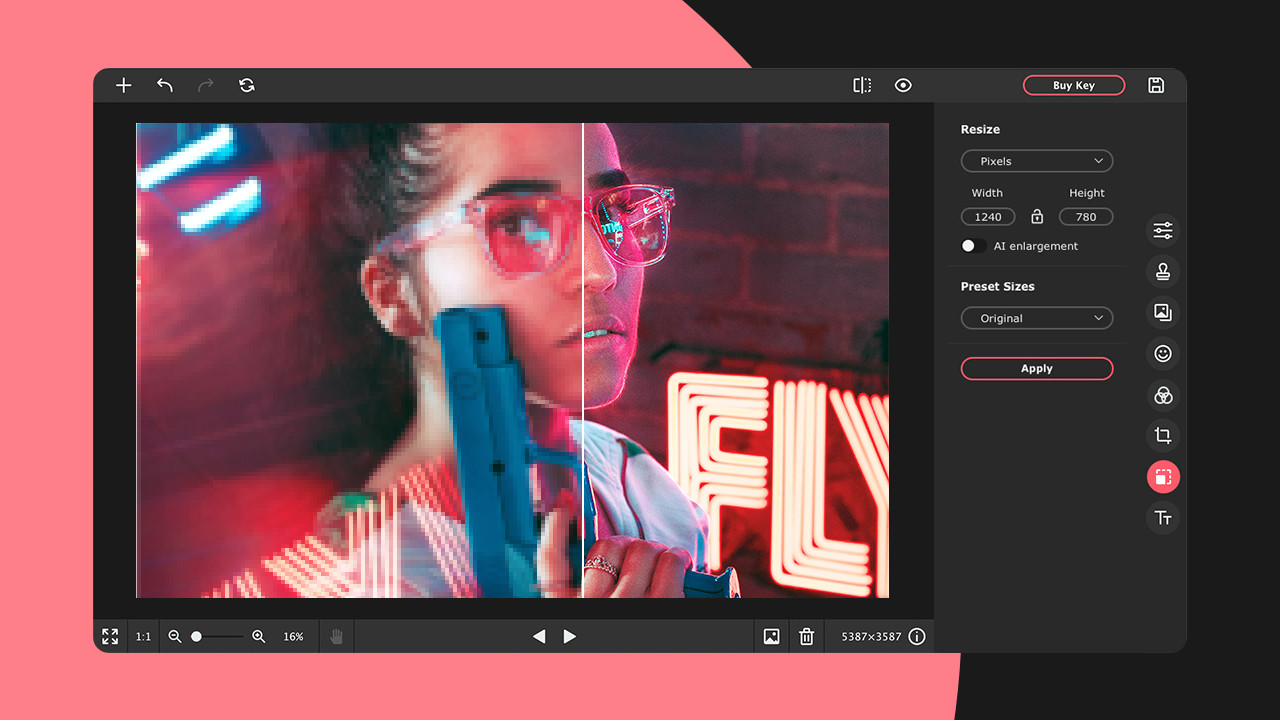 이미지를 압축하거나 확대해야 할 때, 이미지 품질 저하 없이 수행할 수 있습니다. 필요한 크기를 선택하면, 나머지는 AI가 알아서 처리합니다.원클릭 리터칭