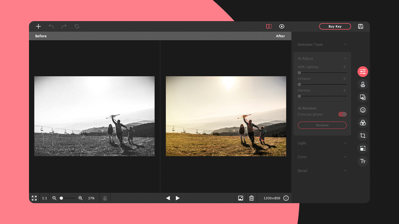 를 만나보십시오 - 사진 편집을 한 단계 업그레이드할 새로운 AI 기반 도우미입니다. 원하는 방식으로 사진을 개선할 수 있습니다. 선명도 및 컬러 조정, 오래된 이미지 복원, 원치 않는 개체 제거, 배경 변경 등의 모든 작업을 몇 번의 클릭만으로 수행할 수 있습니다.AI 기반 툴킷