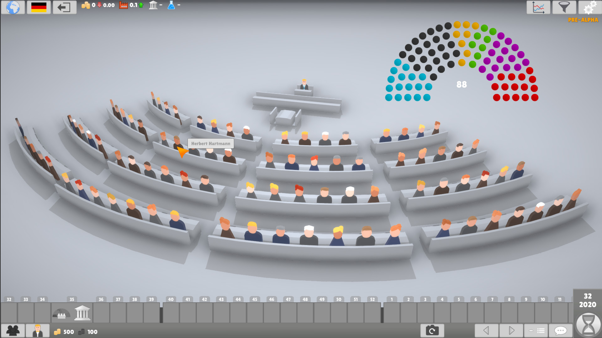 The game comes with a world map featuring the most well-known nations and up to two levels of administrative subdivisions. Players will have comfortable filters to display population, relations, gdp growth, election outcomes by districs, etc.Parliament