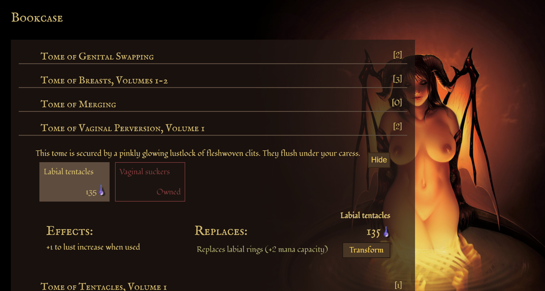 - Corrupt your body with over 65 different transformations, body mods, and clothing items.