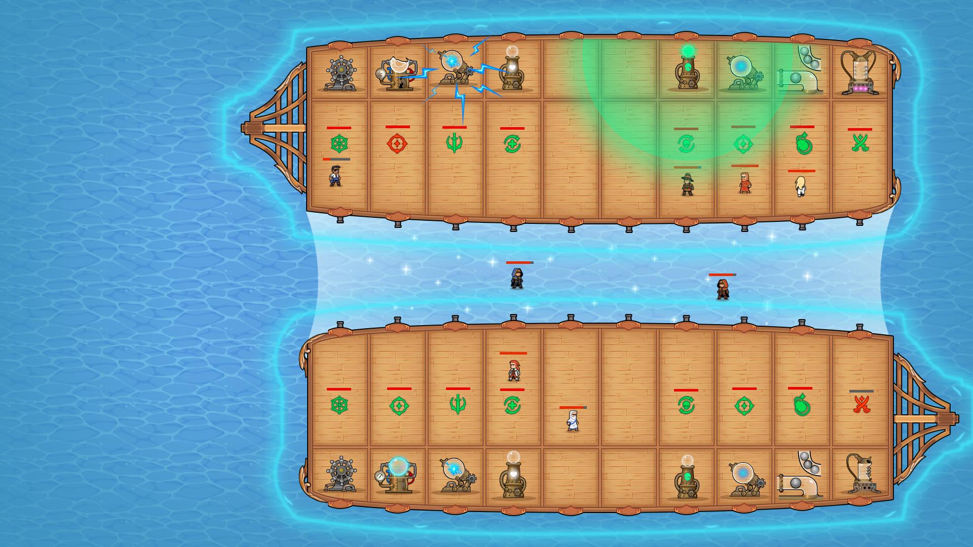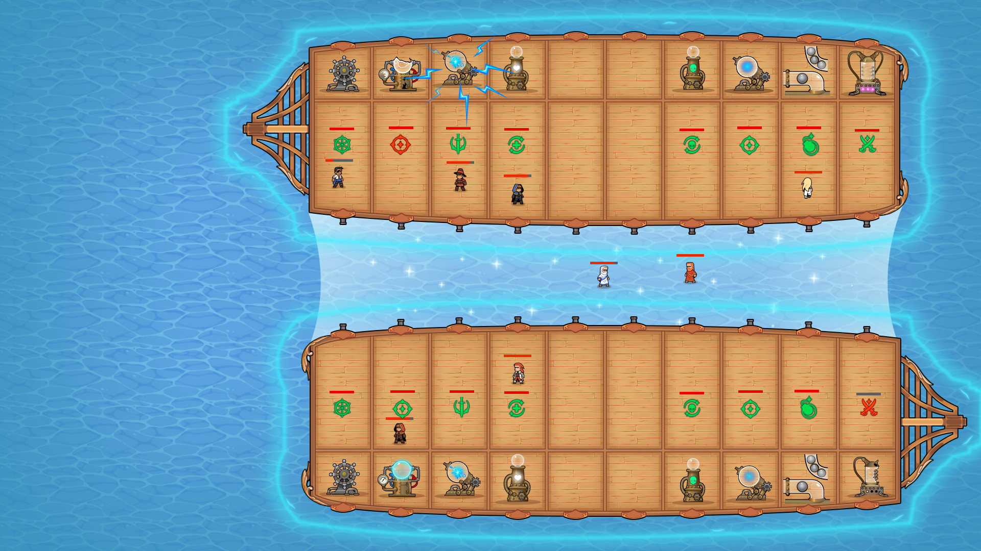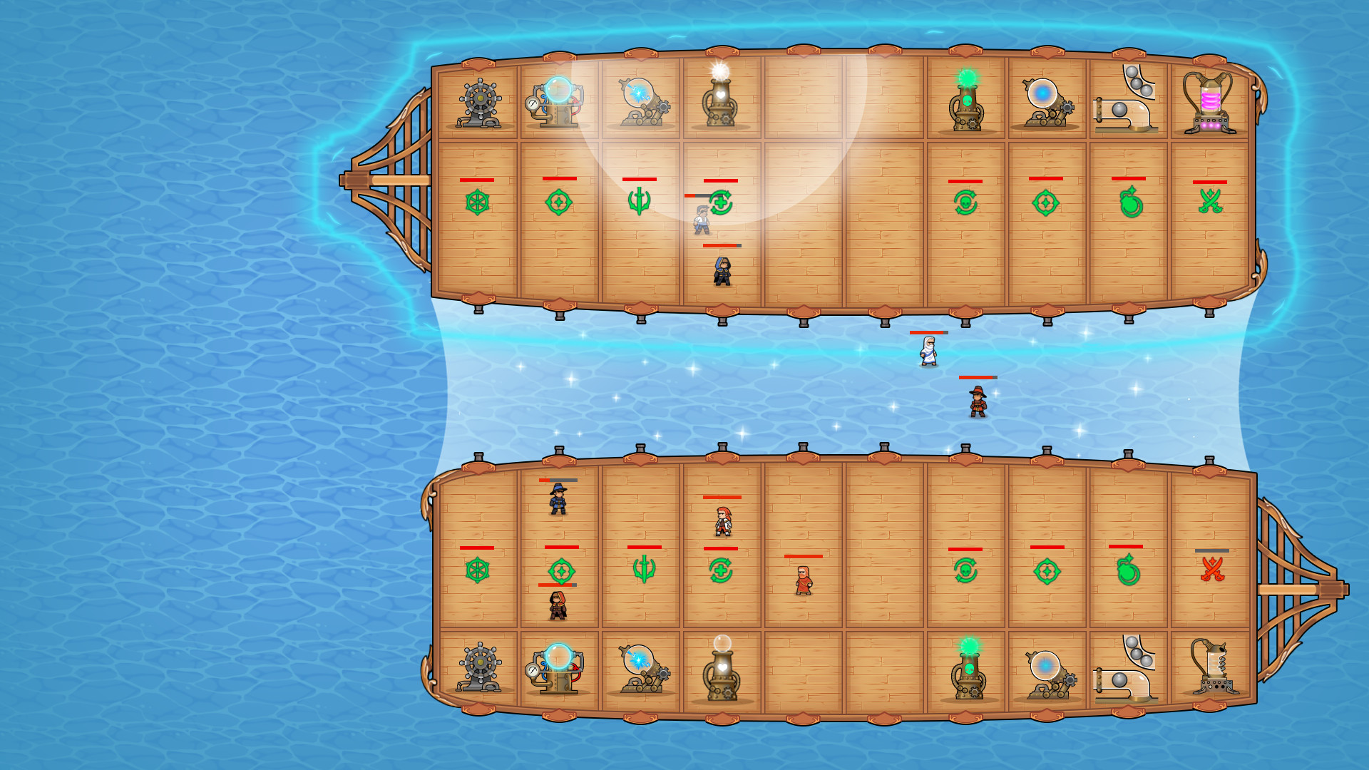You control a ship and its crew - a team of battle mages armed with both sorcery and cannons. Going into the uncharted depths of the magic ocean in search of the mysterious treasure, you fight others who wish to find it. That way, what treasure you are looking for becomes not that important.
