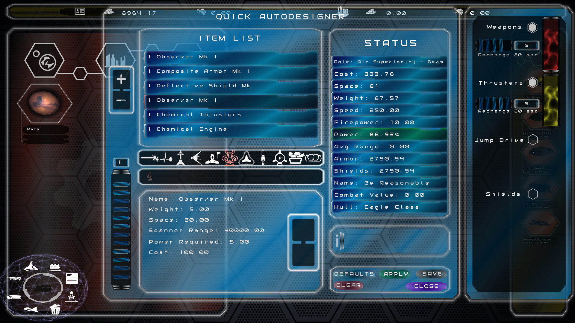There are many tools at your disposal, victory will rely on picking the right ones. Research new weapons and components and then use the ship builder for full customization of your ships including armor thickness, shield strength, and even weapon and component placement. With no set mounting points or number of components the only placement limit is the ship's available internal space. Design the perfect ship manually or with assistance from the auto-build functions. Focus on the technologies that suit your strategy, but beware that your enemy can display just as much variety as you. You will be forced to adapt your designs or be left in the dust.