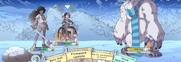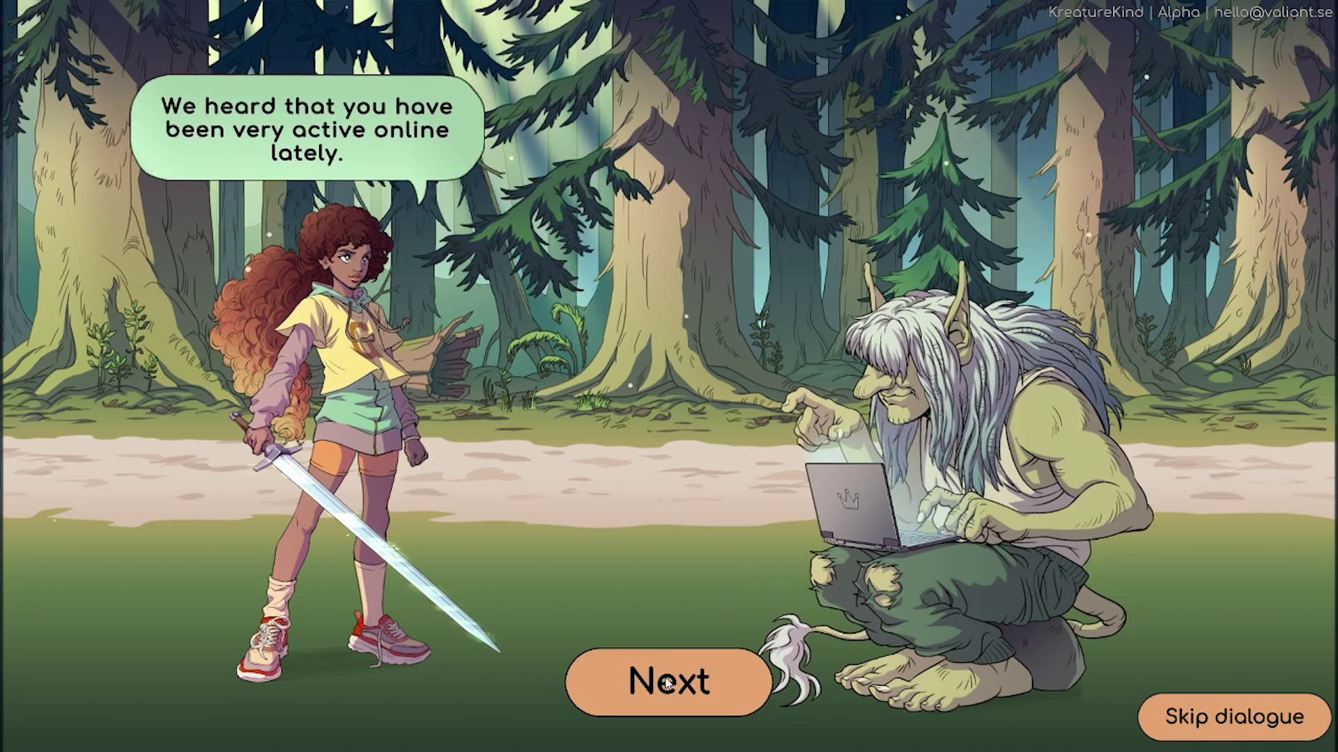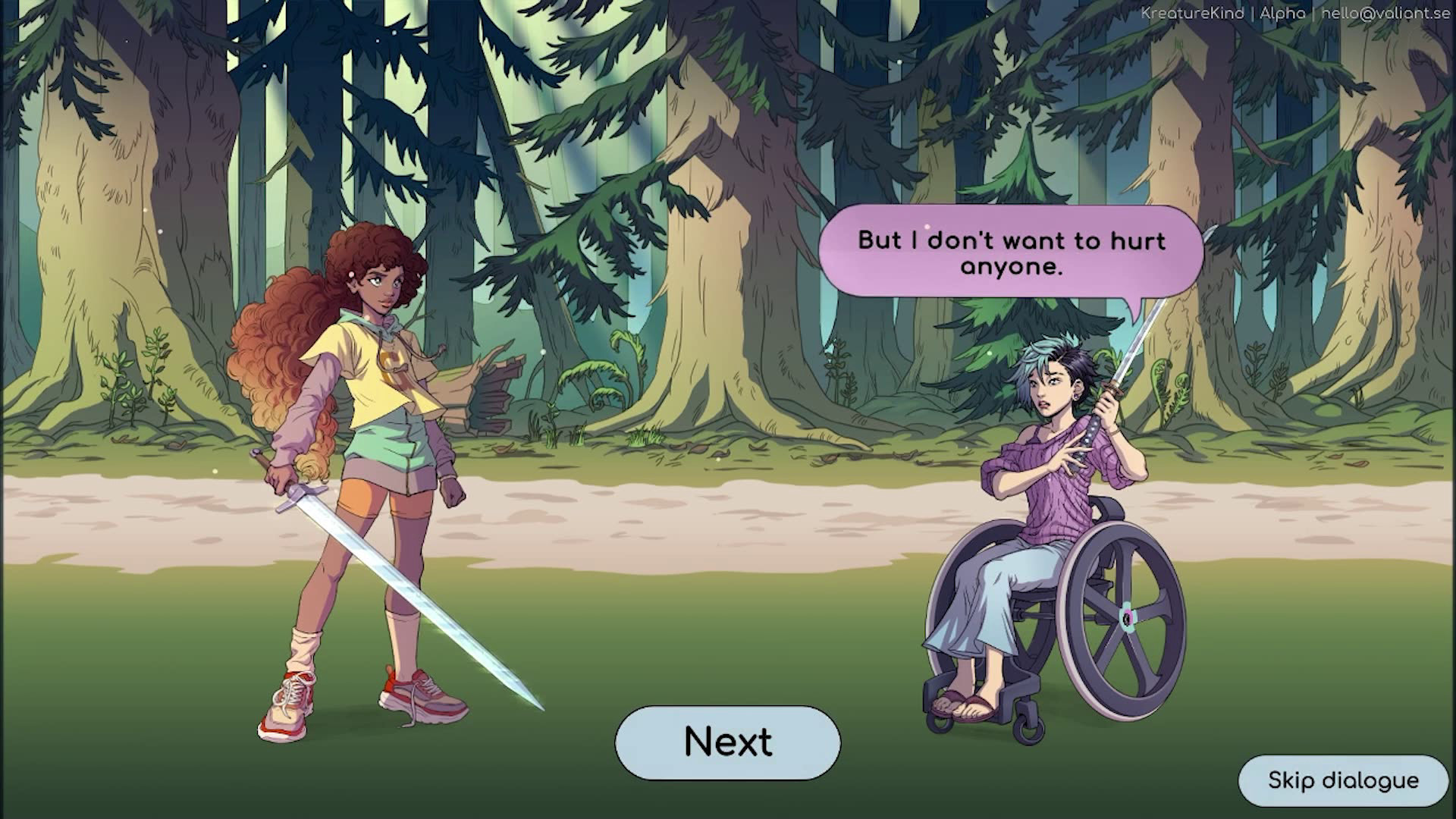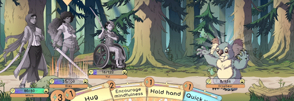 In KreatureKind, the heroes have all found magic swords which enhance their inherent abilities. It just so happens that they are really good at hugging, listening, and sharing memes!