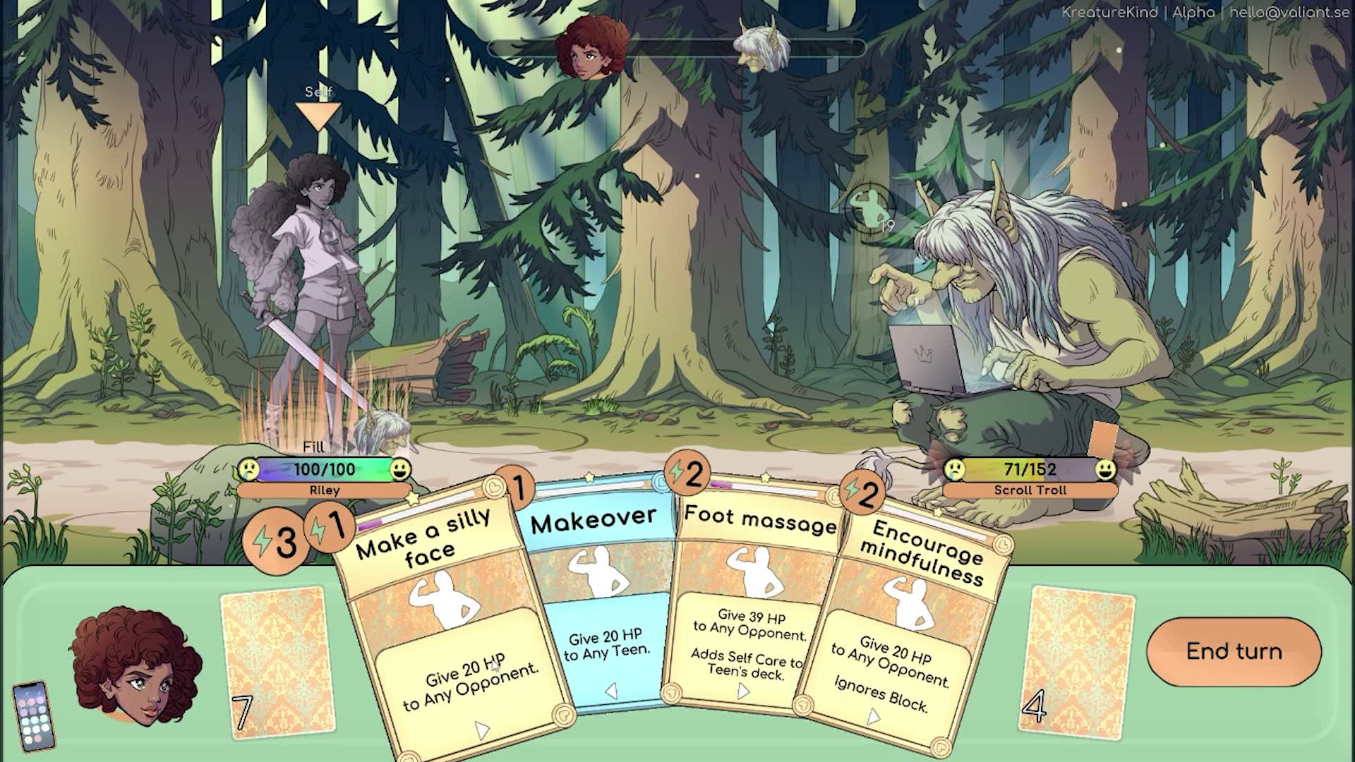 KreatureKind is an approachable and wholesome Card Battler/Deck Builder game where you treat monsters with kindness.