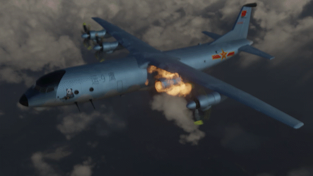 Y-9 Hawk was constructed on a base of manufactured on license aircraft An-12 which construction was self developed by Chinese by changing among others engine, propellers and avionics. Chinese construction is armed in two rapid-fire cannons FCS/25 and FCS/35 caliber 25 and 35 mm and howitzer 105 mm, which makes it a dangerous rival of American AC 130 Gunship. Special fragmentation ammunition, incendiary shells and tungsten core missiles were prepared for the armament.