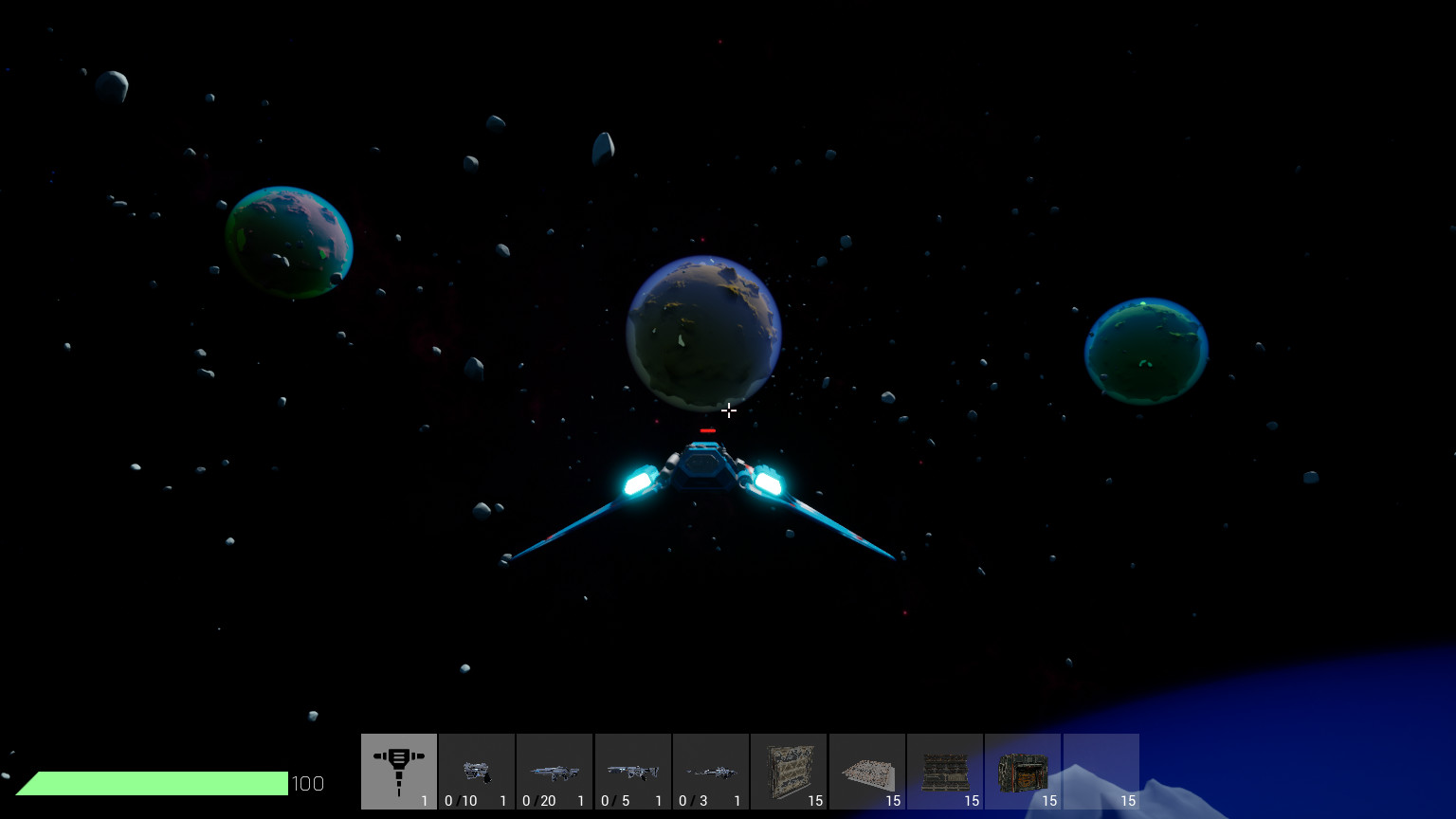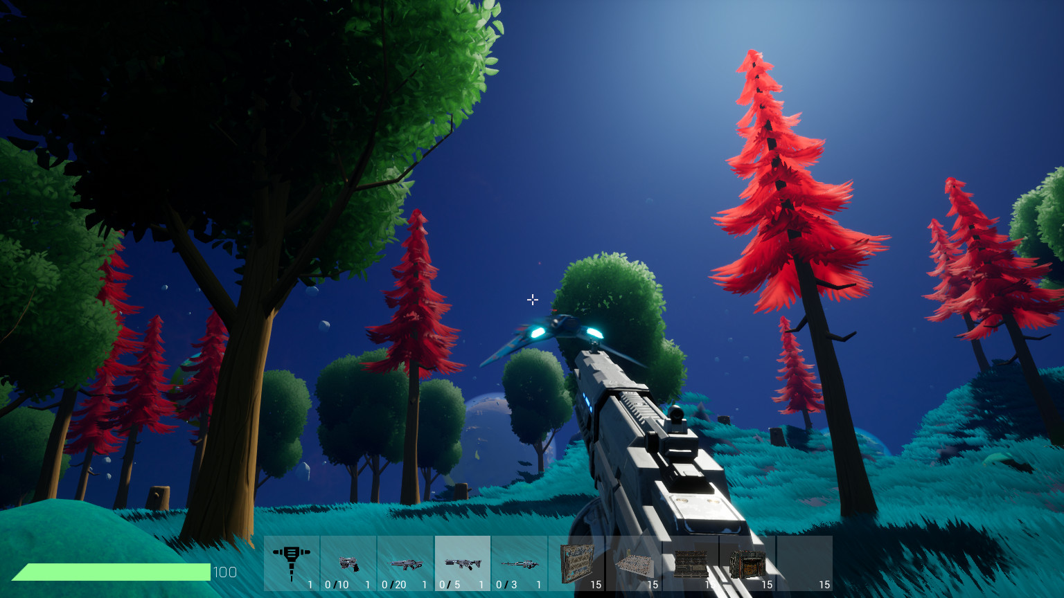 Maybe you like hiding in the bushes with a powerful sniper rifle. Or you'd rather get to close quarters with your enemy and blast them in the face with a shotgun. Maybe you're an average Joe and enjoy our rifle. Either way these 3 weapons cost quite a bit of resources, you'll probably do your early fights with a pistol. To protect against these weapons, buy armor ! If you want to sneak in other bases or have an element of surprise on your enemy, use the jetpack !