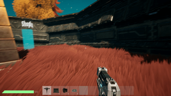 Players can buy items in the shop with the generated resources, these items include weapons, armor, jetpacks, defenses, ships and building parts.