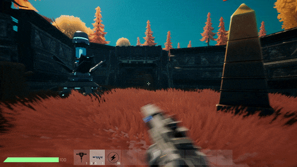 To protect their spawn each team must build around it and place defenses. Place high external walls to prevent players without a jetpack from getting in, stairs to have the high ground on your enemy or turrets to blast any enemy in a close radius. There are other building parts such as walls, a vehicule pad, corridors, doors and so on.