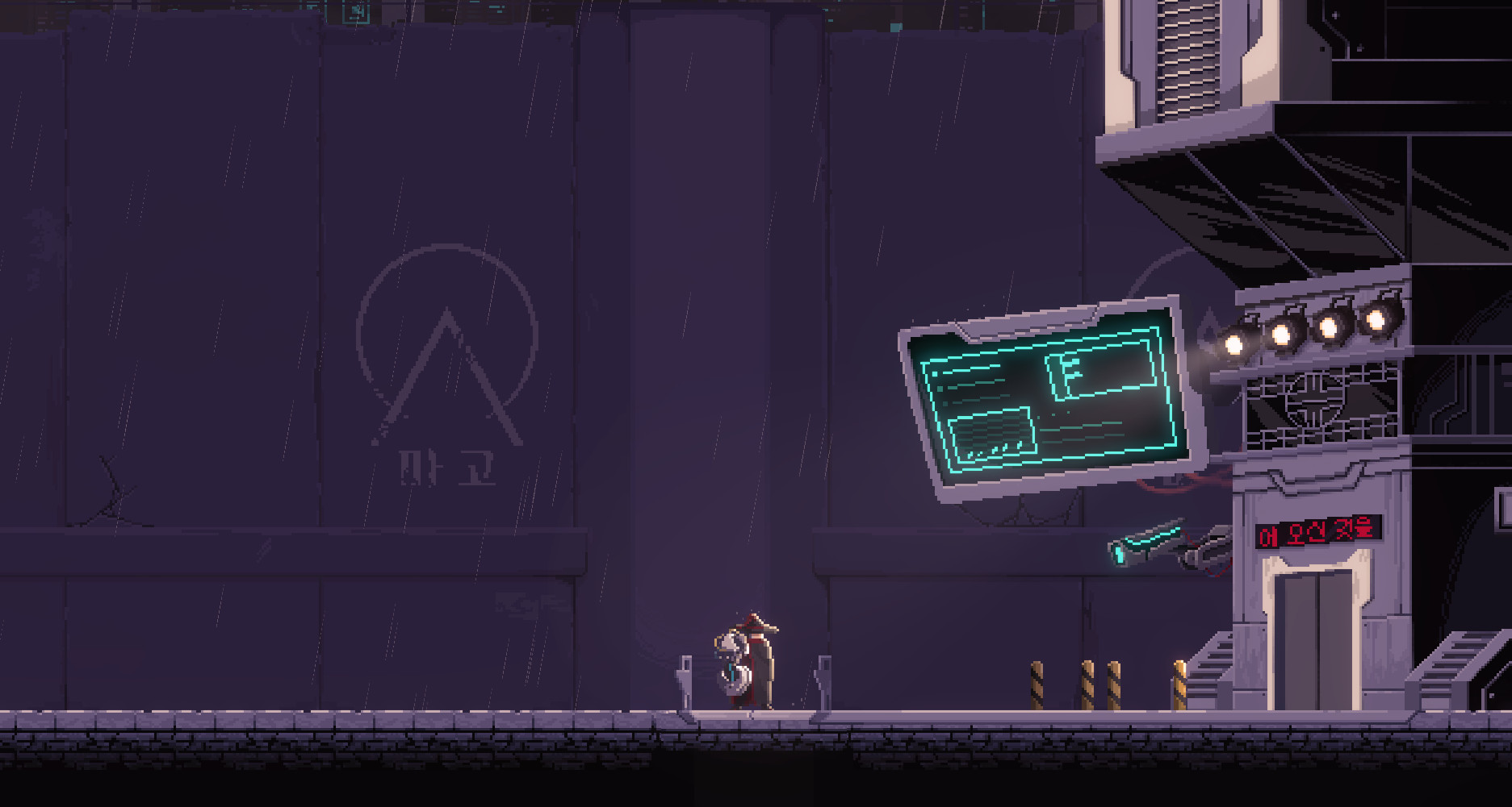 기계팔로 무장한 퇴역 군인은 초거대 재벌의 부패한 사유 도시를 오릅니다. 도시에 숨겨진 비밀을 밝혀내기 위해, 그리고 '산나비'를 찾아내 복수하기 위해. 사이버펑크 디스토피아를 배경으로 펼쳐지는 역동적이고 스타일리쉬한 2D "사슬 액션" 어드벤처 플랫포머 게임, 산나비입니다.