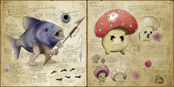 You'll find many notes from a mysterious explorer lost in the dungeons, with detailed drawings of the creatures that inhabit them, plus a lot of information on their behaviour and tips on how to deal with them!