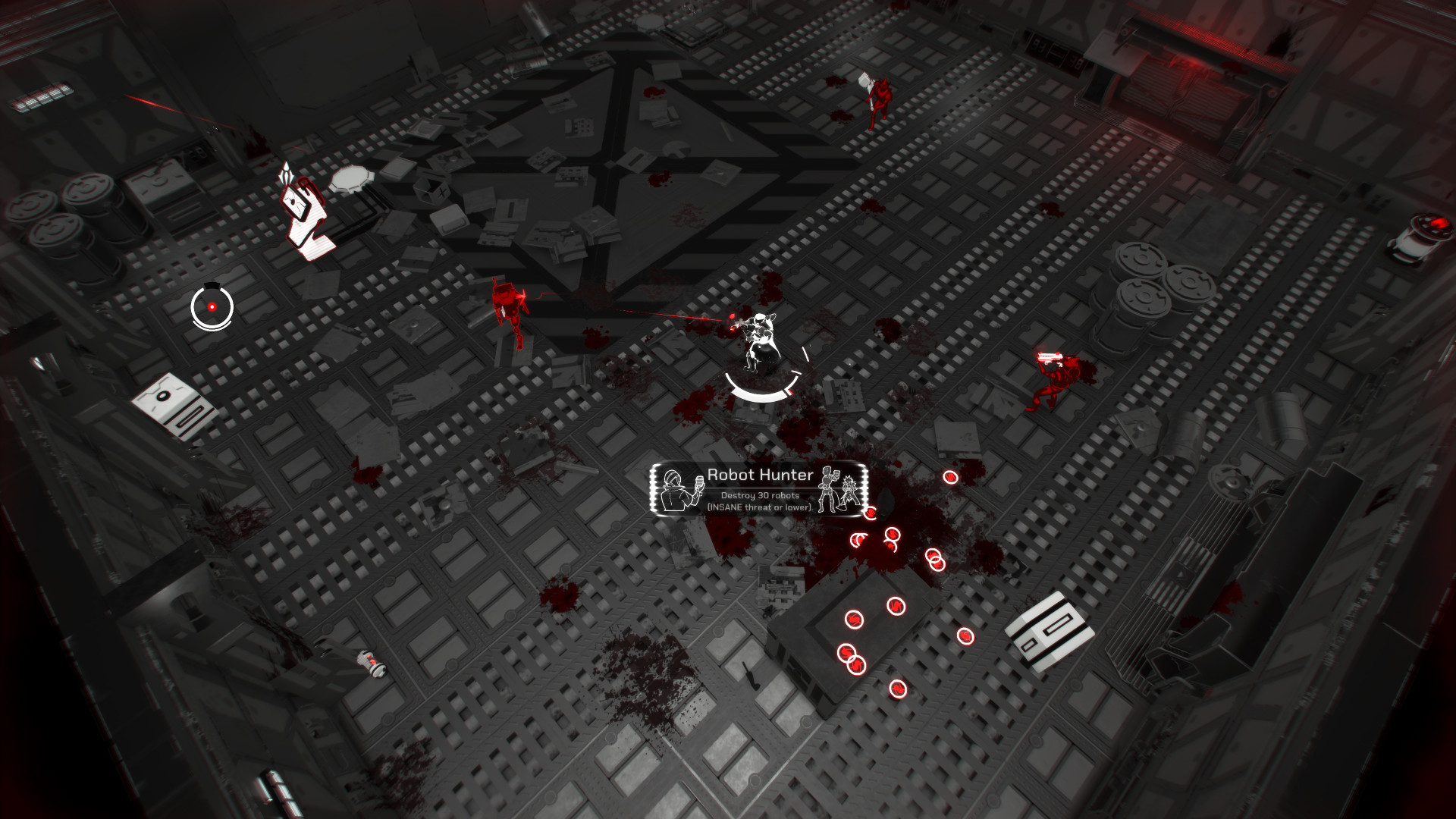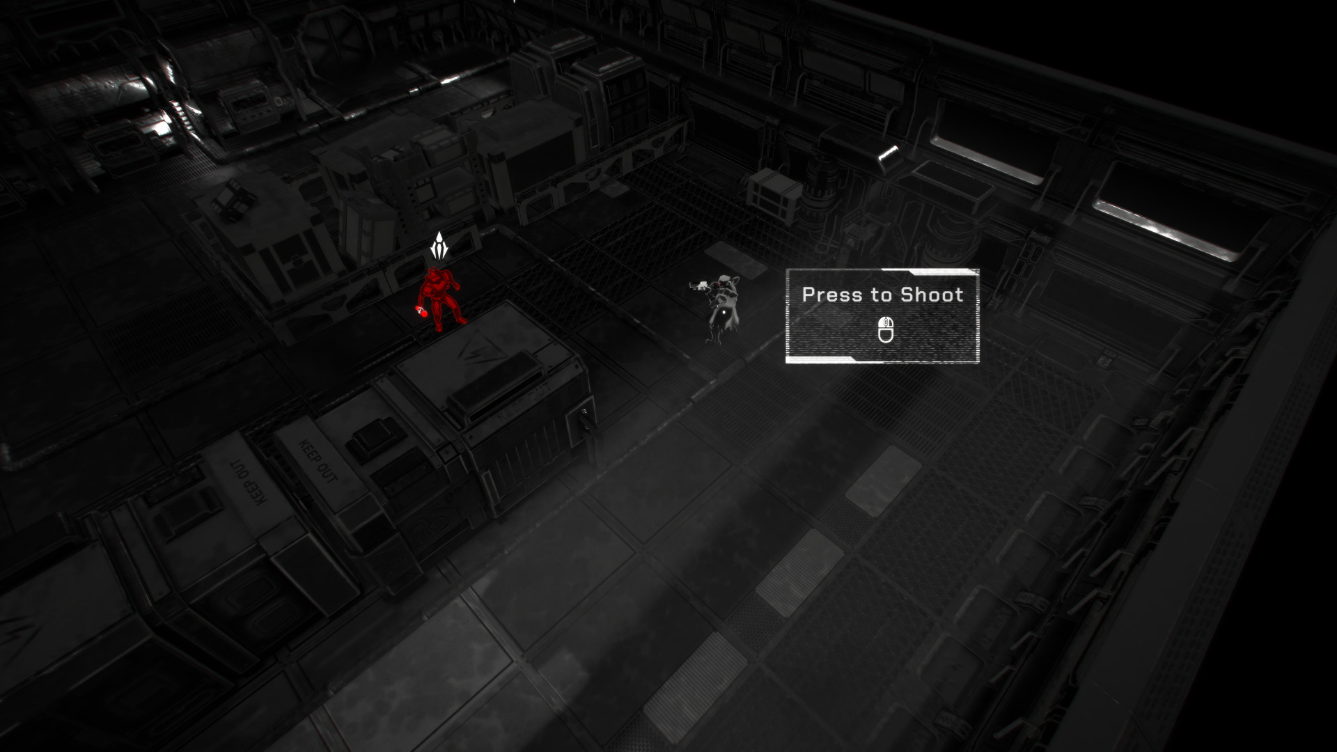 You are an outlaw, crawling about the infinite black space, in search of the person that did something horrible to you. In fact, you are so focused on your quest that you started to not care about your surroundings that are alien to your goal, making them look muted, but what you do care the most it would always be in RED.
