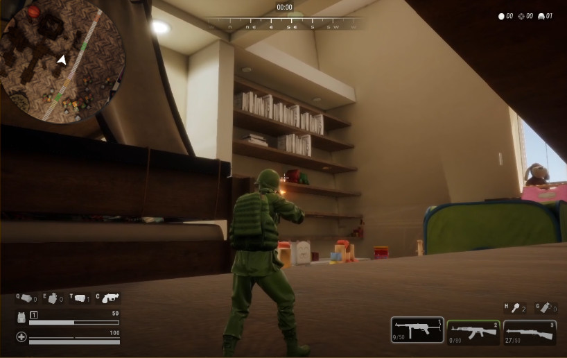 In Mini Royale, up to 50 toy soldiers fight for victory. The game is played in a children's room, from a rather unusual perspective, full of exciting things to discover, and lots of weapons and equipment that will help you set yourself apart from the other players.