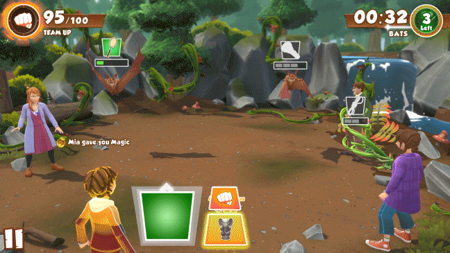 - Apply bonus abilities: gain time bonuses that add valuable seconds to your fight, and team-up points when you help a friend escape vines or gift magical objects. The more you work together, the more likely you are to get a Team-Up All-Out Attack!