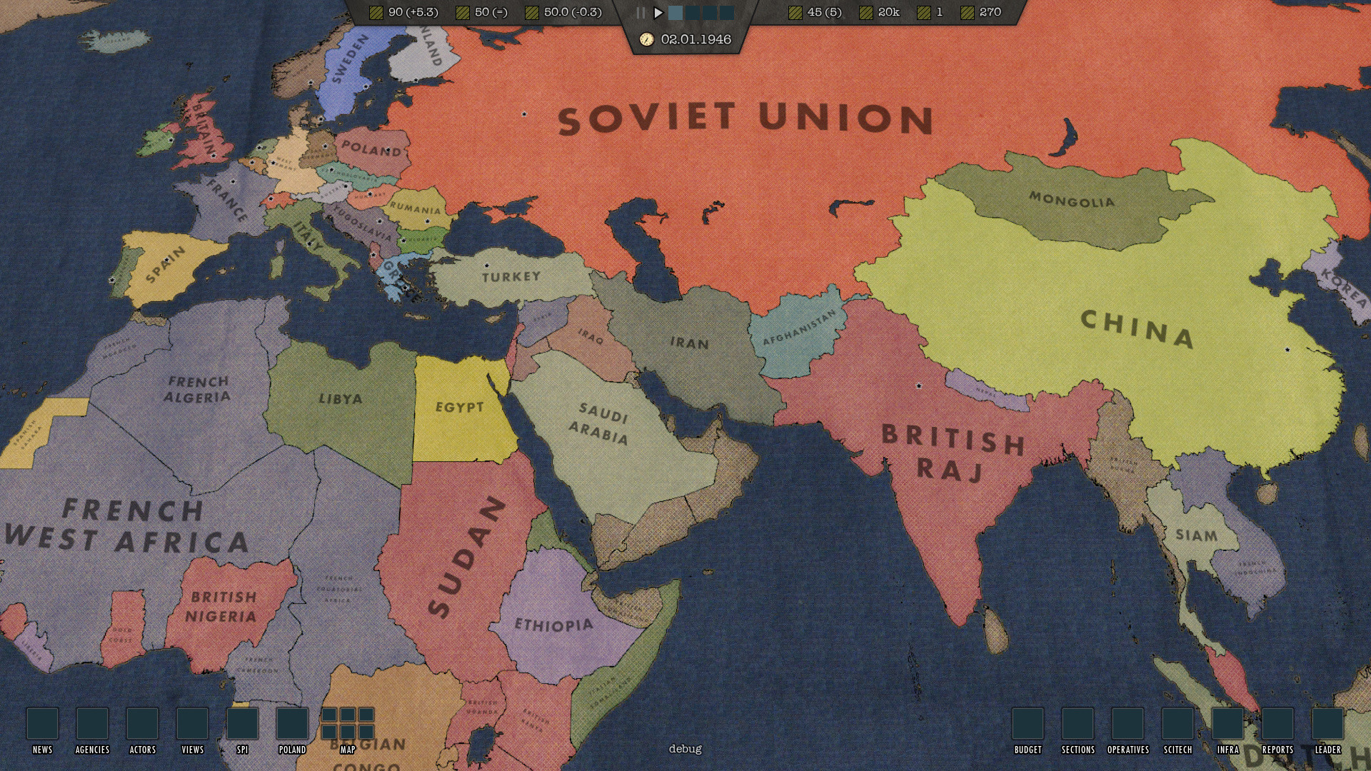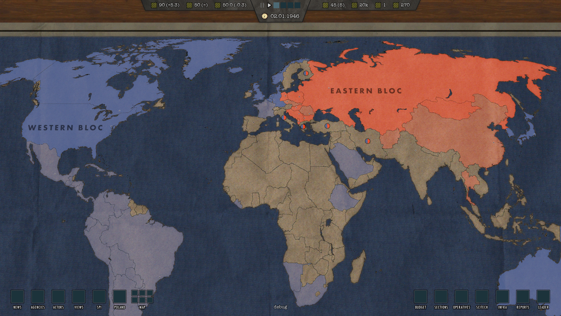 Choose one of 102 countries and guide character-driven national intelligence agency through rough seas of the Cold War. From Soviet KGB and American CIA, up to Israeli Mossad and British MI6, expect different approaches to grand strategy gameplay.INNOVATIVE MECHANICS