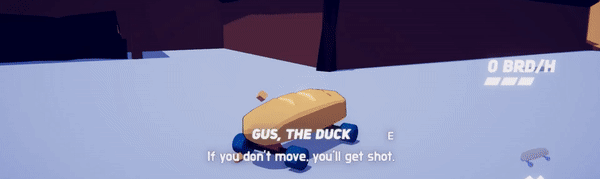 You're the only living loaf left on this planet and ducks with guns want you dead.Make your way through three different locations all full of ducks.