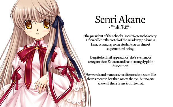 At the same time, mysterious happenings keep befalling Kotarou. He takes up the offer to help Senri Akane, the club president of the Occult Research Society and begins an investigation that will end up involving his fellow classmates.