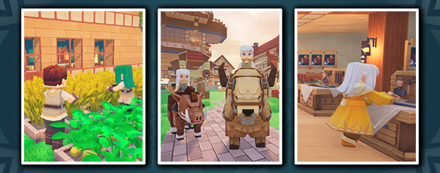 Invite friends to live the life you want in shared Homelands. You can try out weaving and tanning leather and make yourself new clothes; you can take care of your farm and treats your friends with a generous meal with different dishes; you can also breed and train high-quality mounts and become a happy rancher. With the Homeland’s free trading system, you can also become a merchant and place your excess materials at a stall.