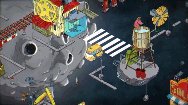 Explore a muddy milky way and an under-invested village universe. Meet and interact with animal-like strange characters inhabiting this world. Sell junk to acquire powerful weapons and car parts from various planets and eras.